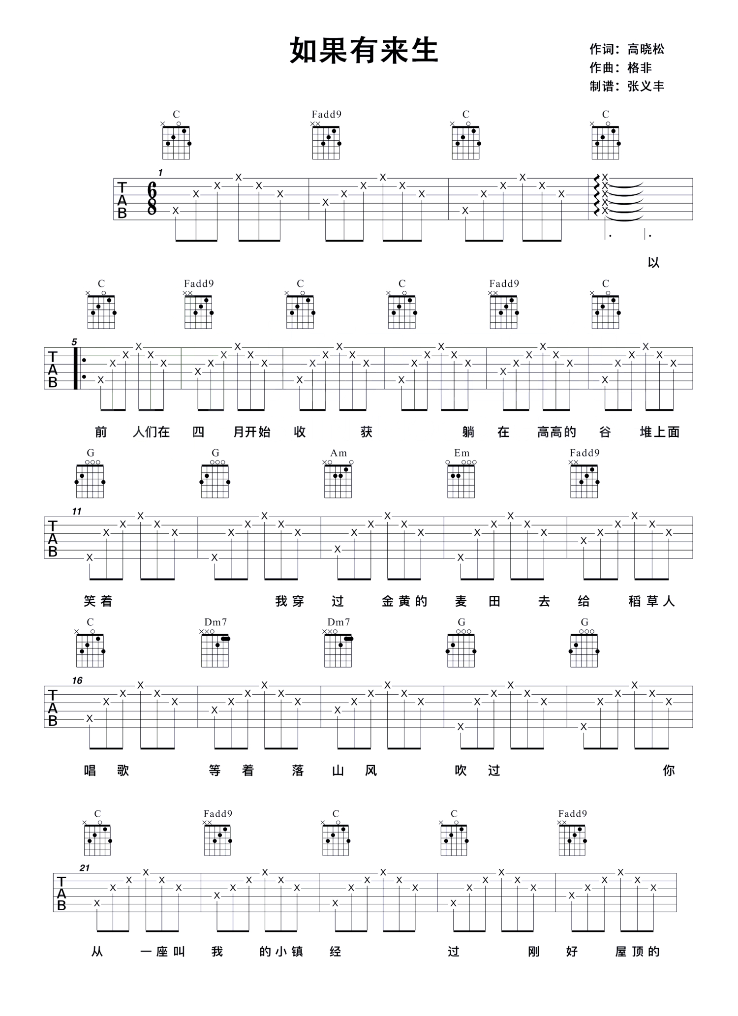 吉他弹唱C调来源:张义丰27171 浏览2018-03-19 13:34发布图谱共2页