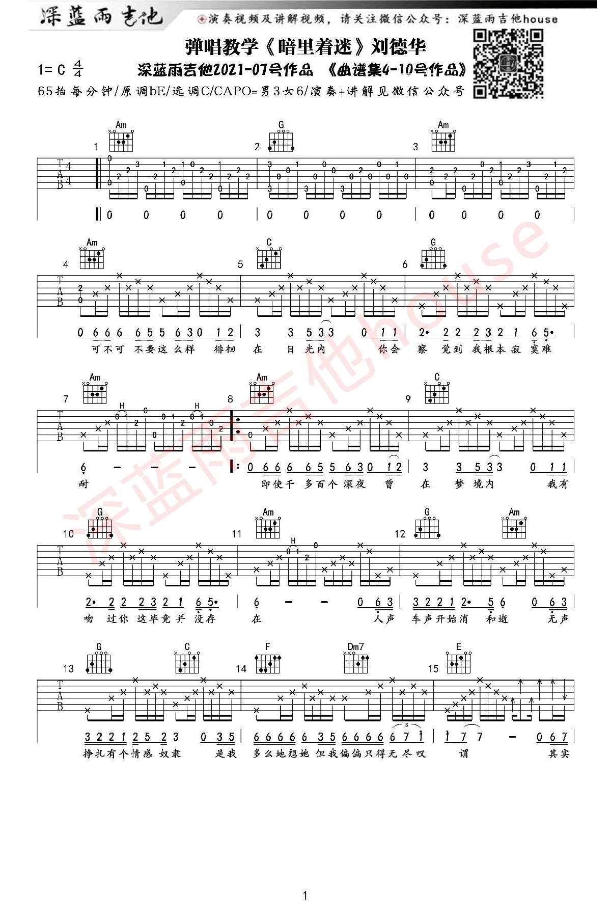 曲谱介绍: 暗里着迷吉他谱,刘德华演唱的一首经典粤语歌曲,暗里着迷六线谱,原调降E选用C调指法,变调夹夹推荐,男生夹三品女生夹六品。两张图片谱例,深蓝雨吉他编配,琴谱网更新上传。