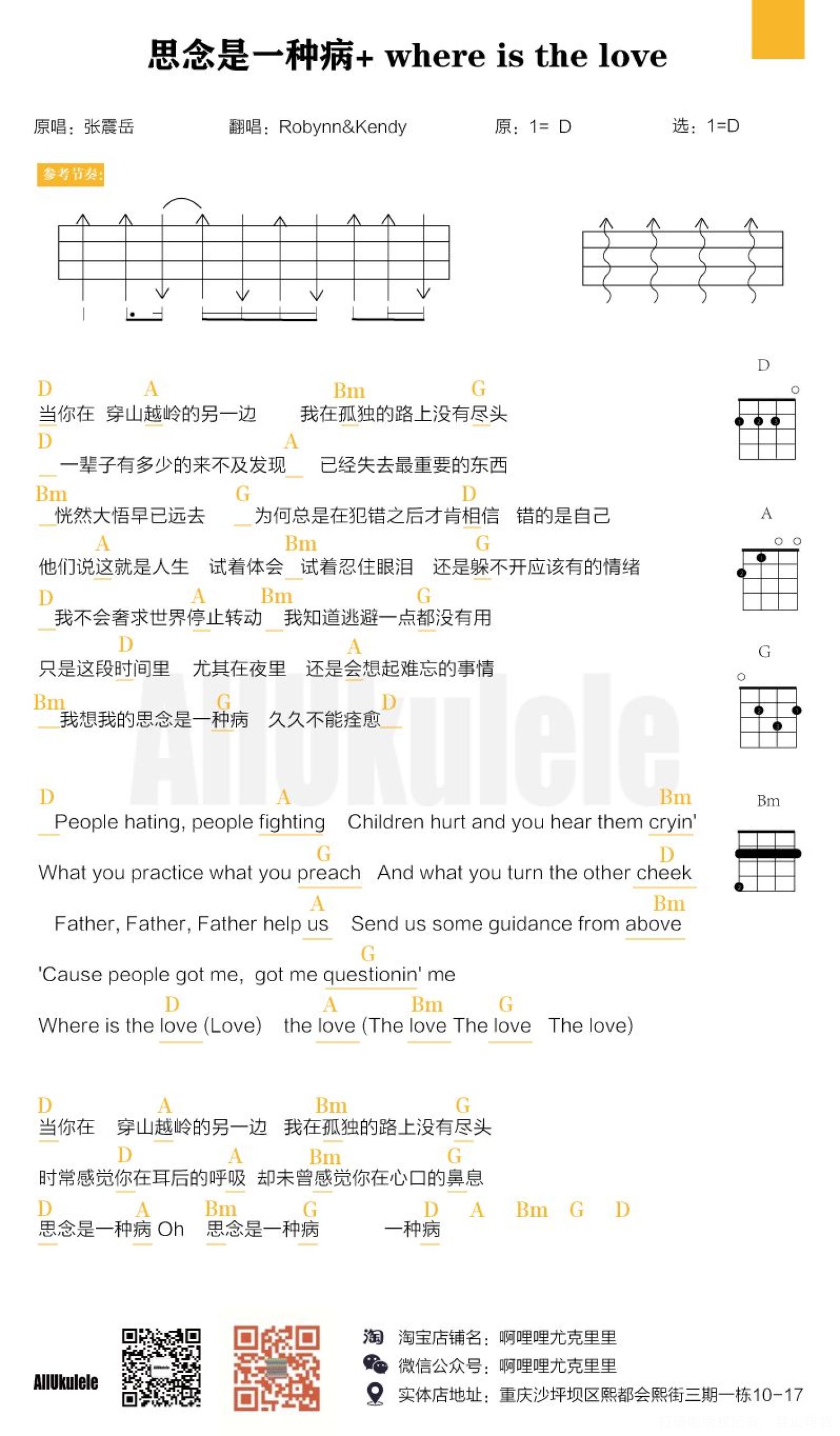 当前位置:琴谱网>尤克里里>思念是一种病+Where is the love