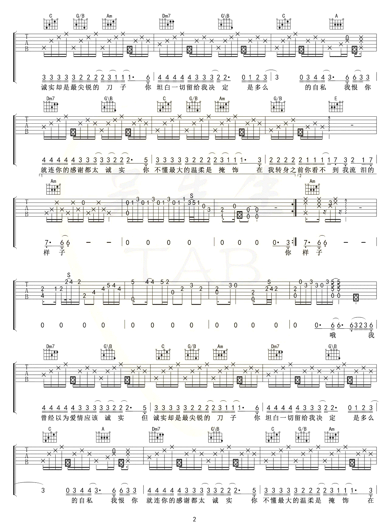 当前位置:琴谱网>吉他弹唱>你太诚实