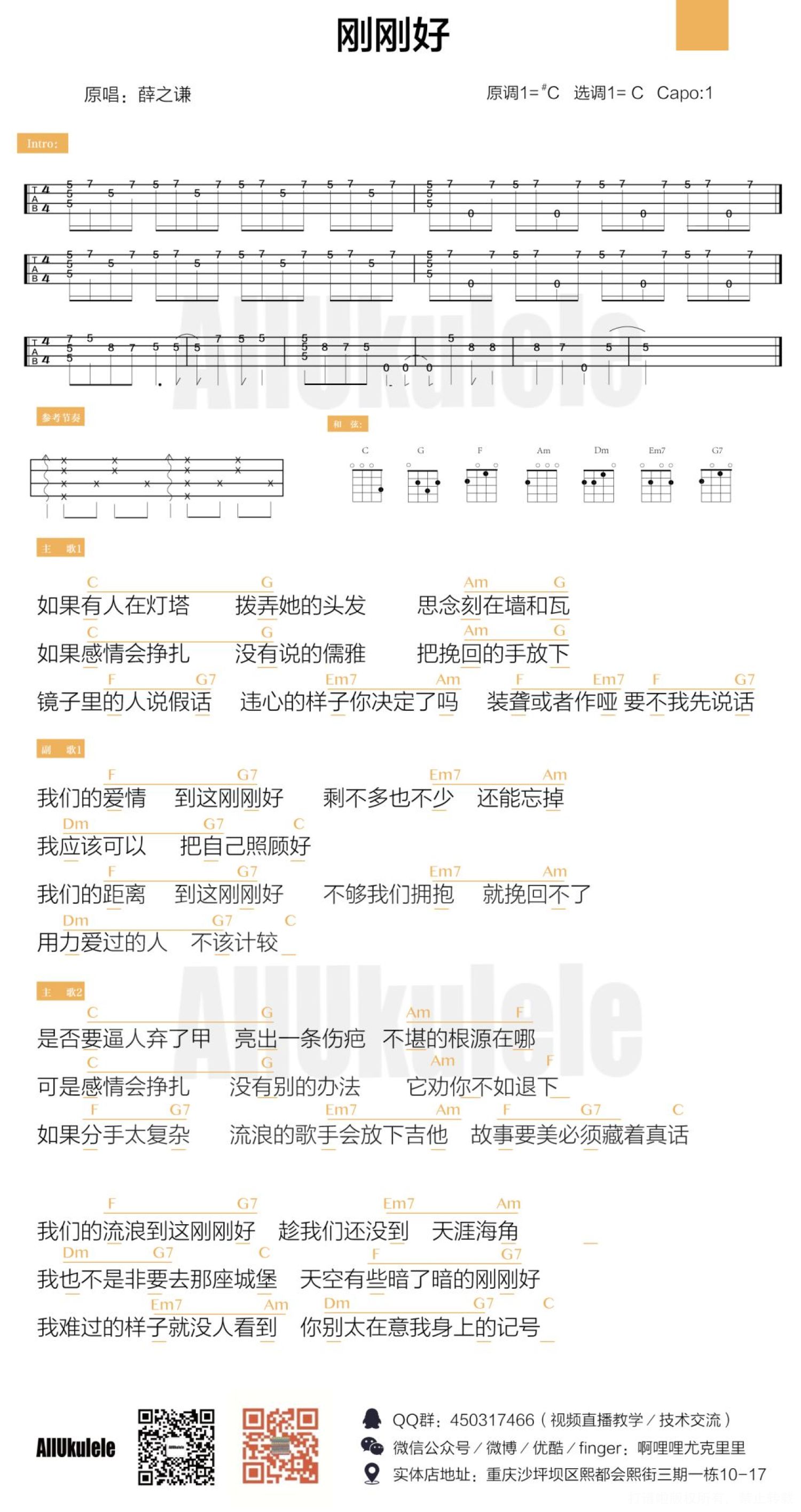 曲谱介绍: 《刚刚好》乌克丽丽谱