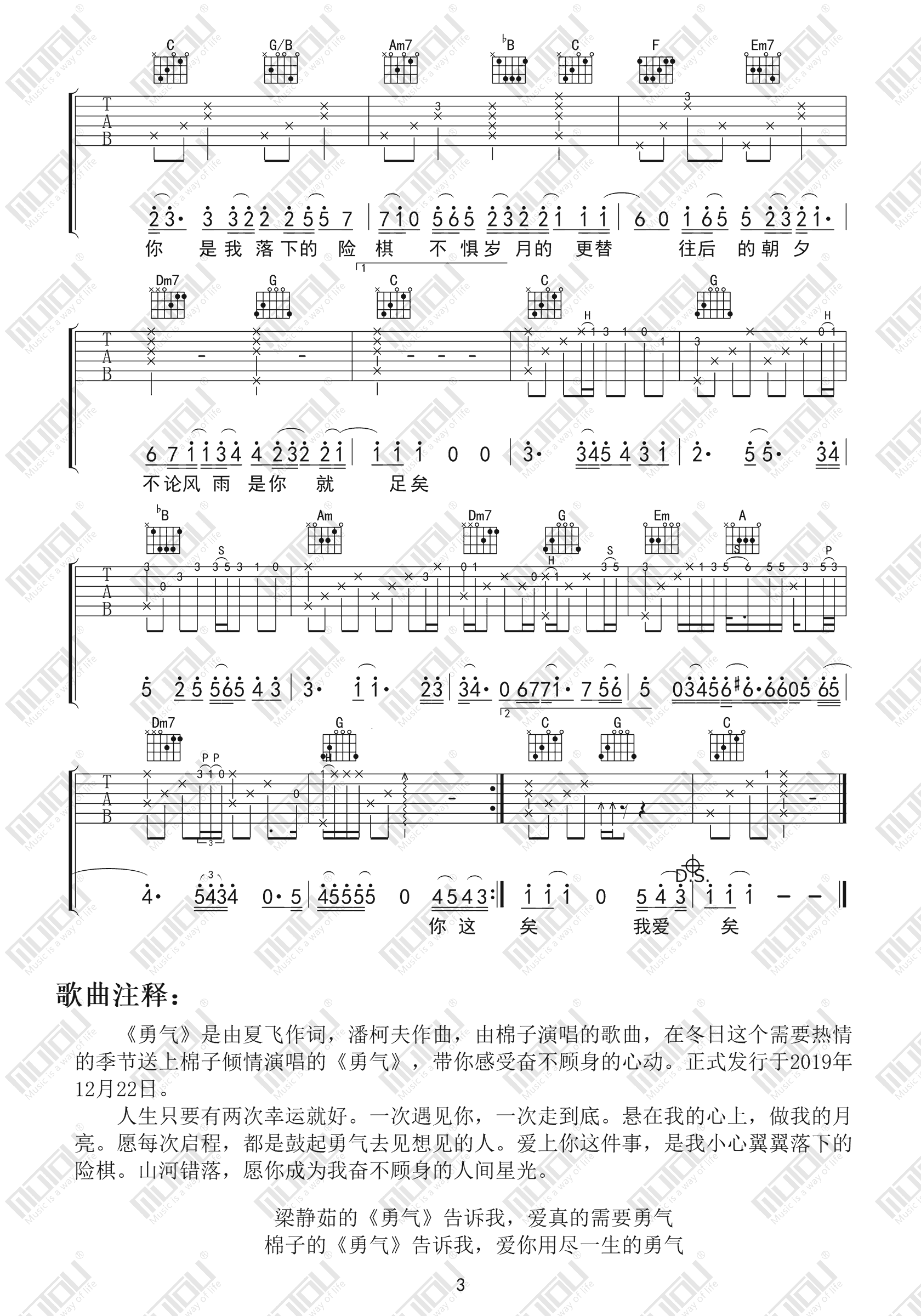 勇气吉他谱 - 棉子 - C调吉他弹唱谱