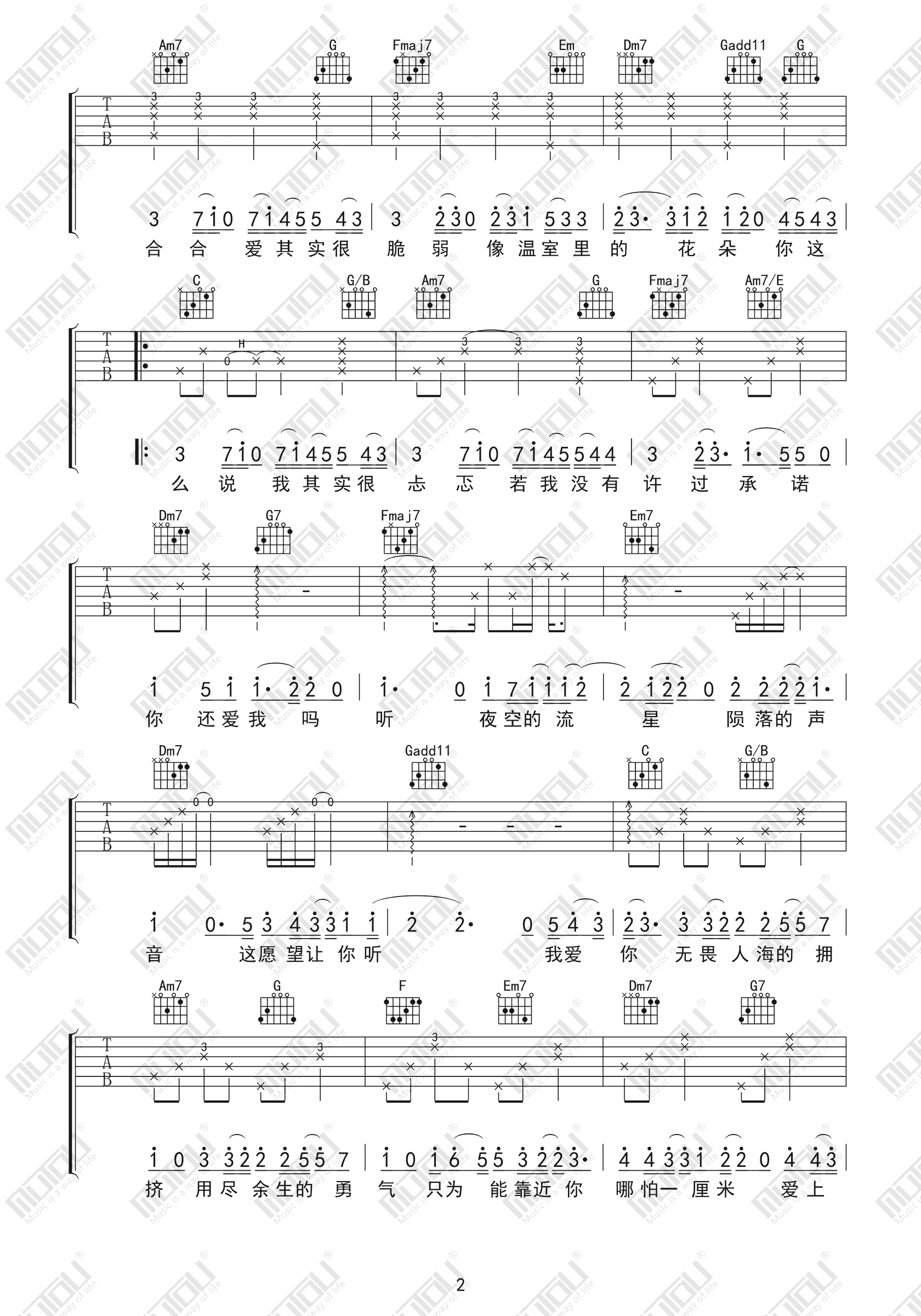 当前位置:琴谱网>吉他弹唱>勇气