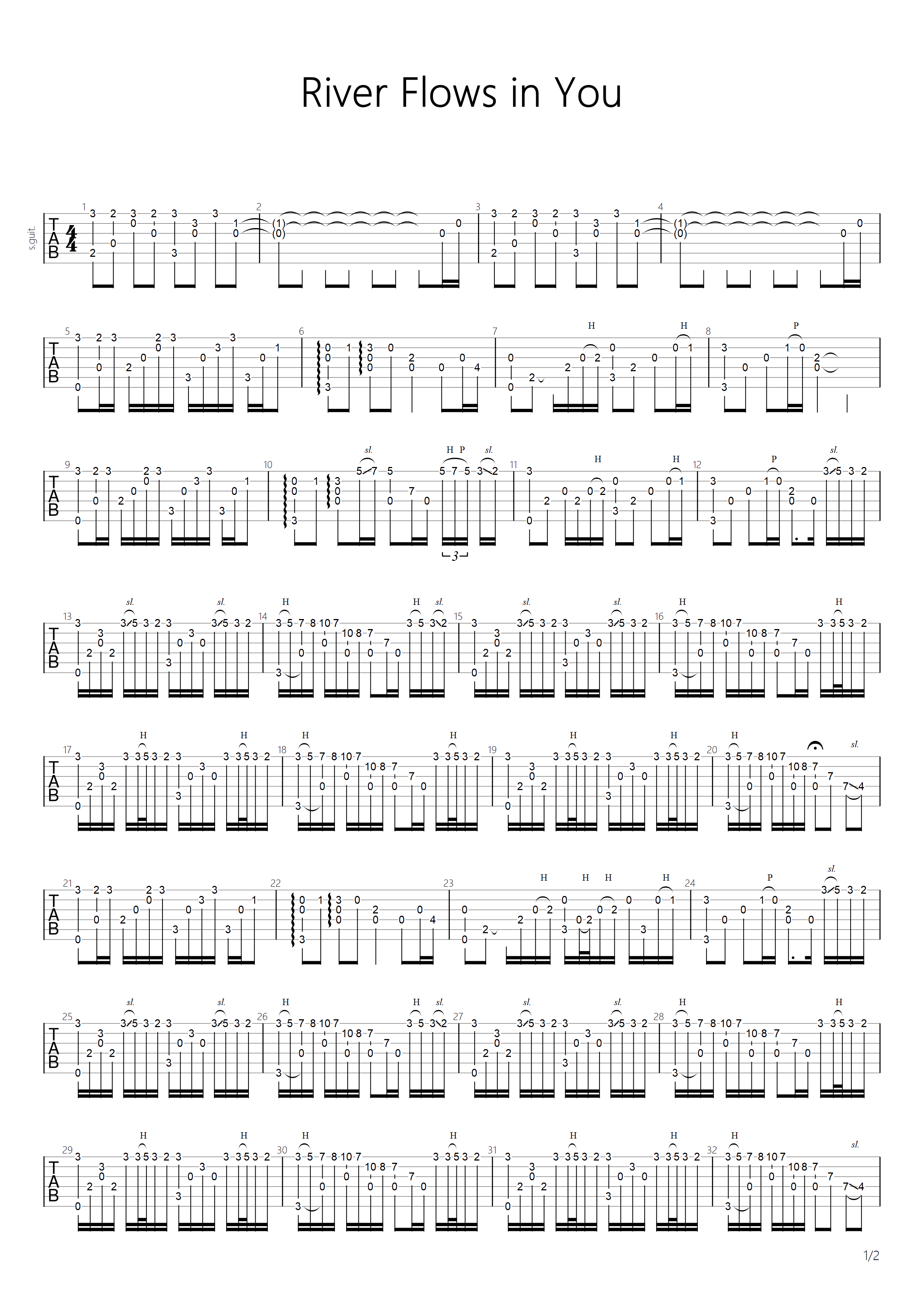 River Flows In You吉他谱 - River - 吉他独奏谱