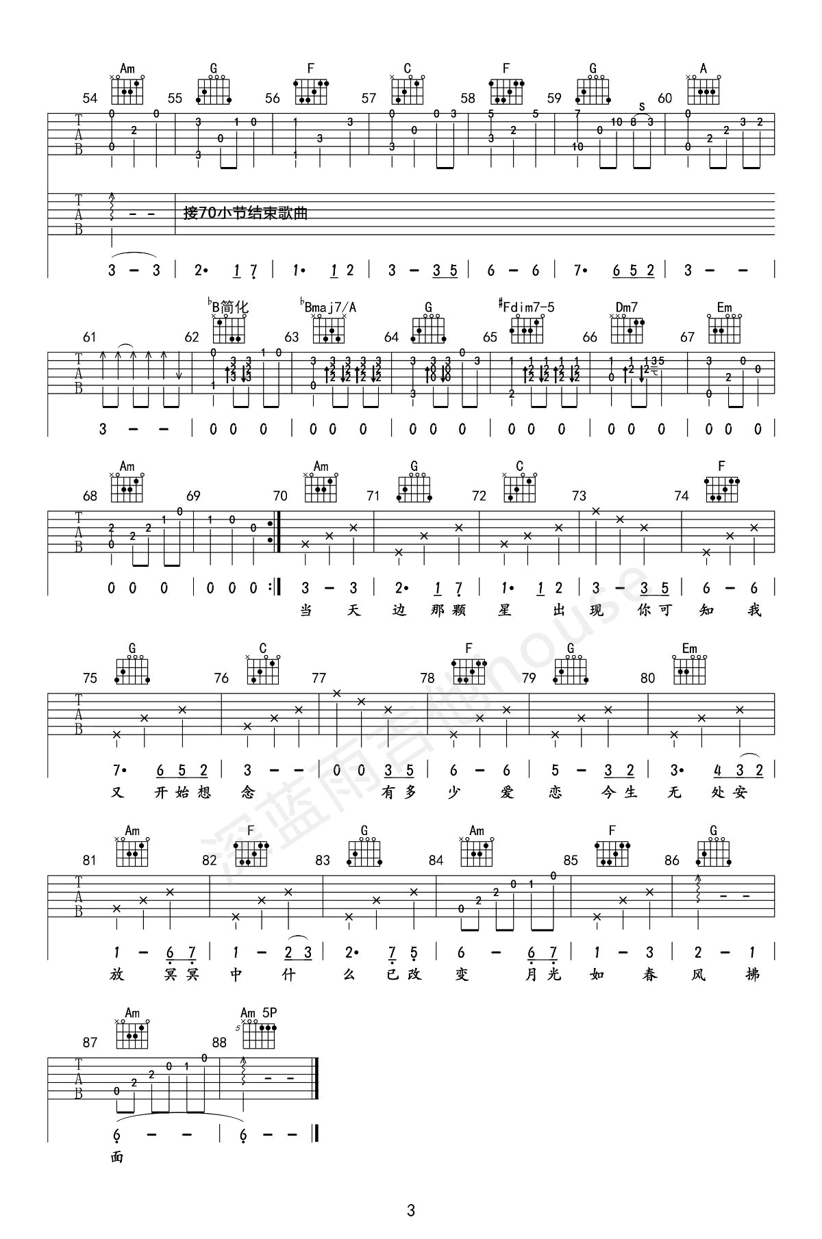曲谱介绍: 假如爱有天意吉他谱,李健在《我是歌手》演唱的经典改编,原曲来自于韩国同名电影主题曲。假如爱有天意六线谱,原调F选调C,变调夹男生3-5品,三张图片谱例。琴谱网感谢深蓝雨吉他出品分享。