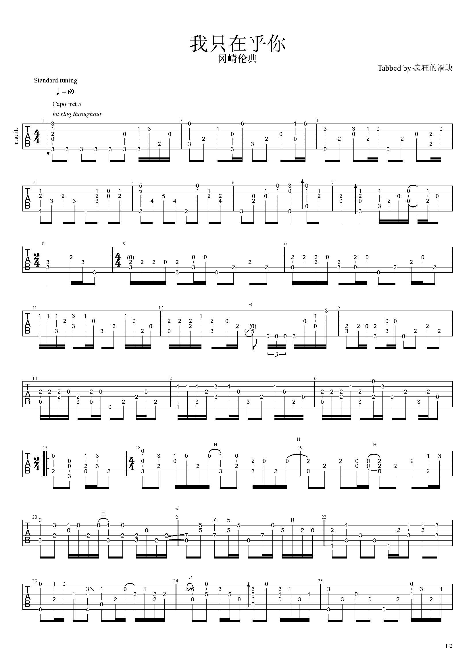 曲谱介绍: 我只在乎你指弹吉他谱,邓丽君的一首怀旧金曲,我只在乎你吉他独奏谱,冈崎伦典指弹版本,CAPO夹五品,两张高清图片谱,琴谱网整理更新,感谢疯狂的滑块编配分享。