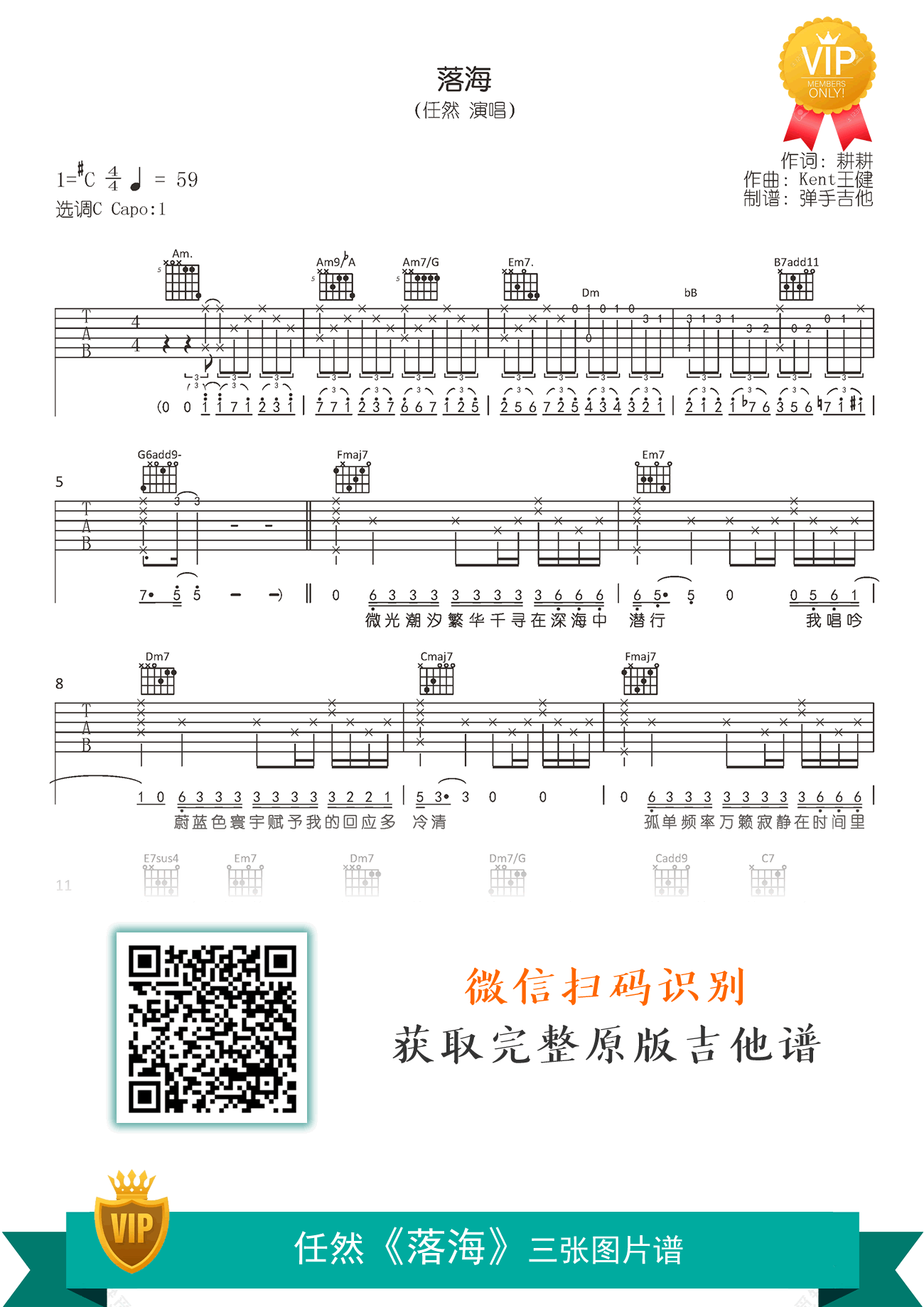 曲谱介绍: 《落海》吉他谱,任然娓娓唱述了一个悲伤的故事。落海六线谱,原调升C,变调夹一品,选用C调指法弹唱。完整版共三张高清图片,琴谱网整理发布。