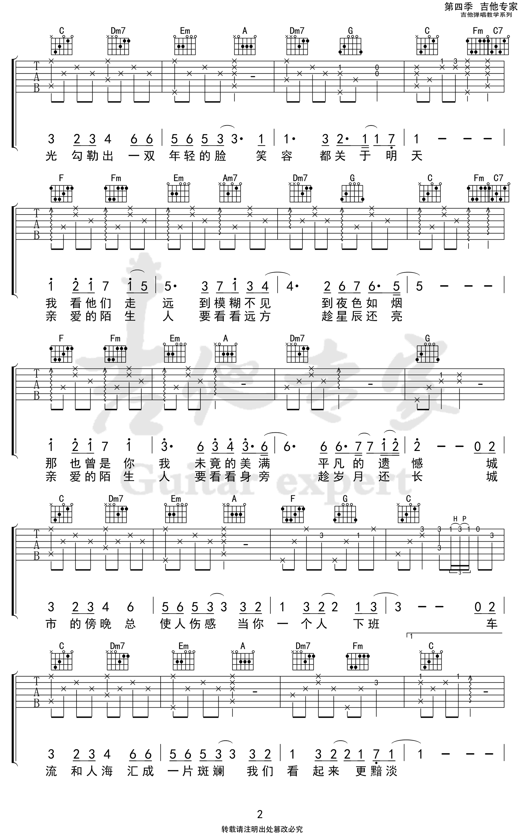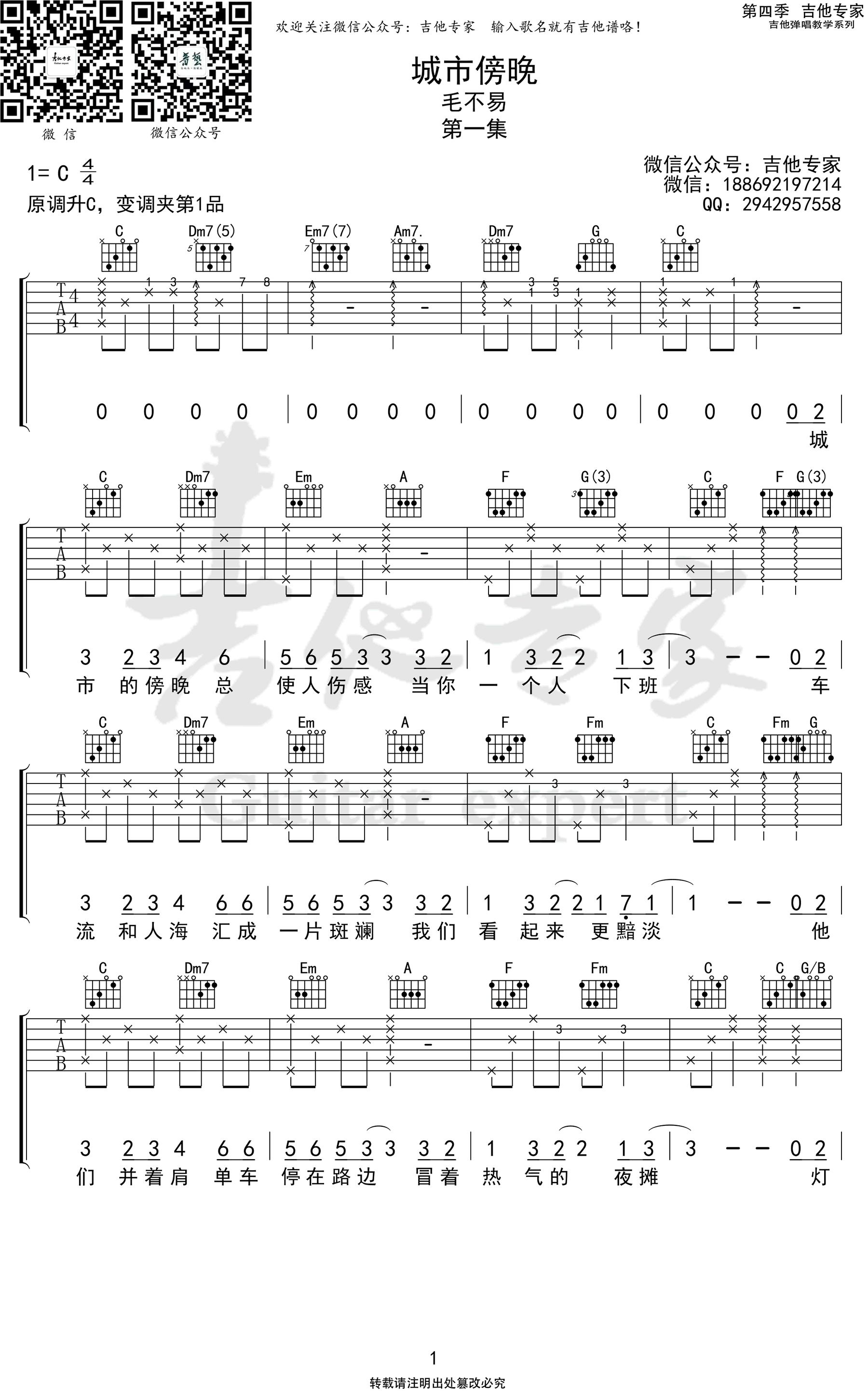 城市傍晚吉他谱 - 毛不易 - C调吉他弹唱谱
