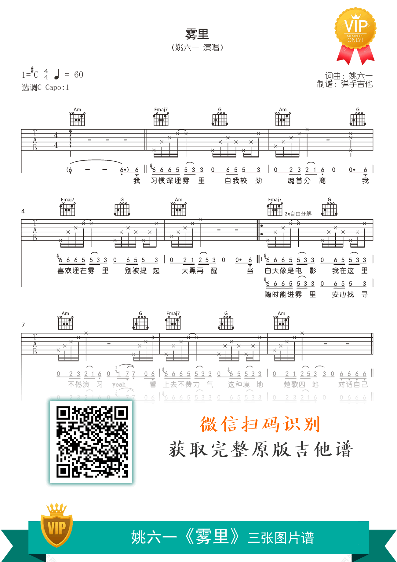 雾里吉他谱 - 姚六一 - C调吉他弹唱谱 - 原版