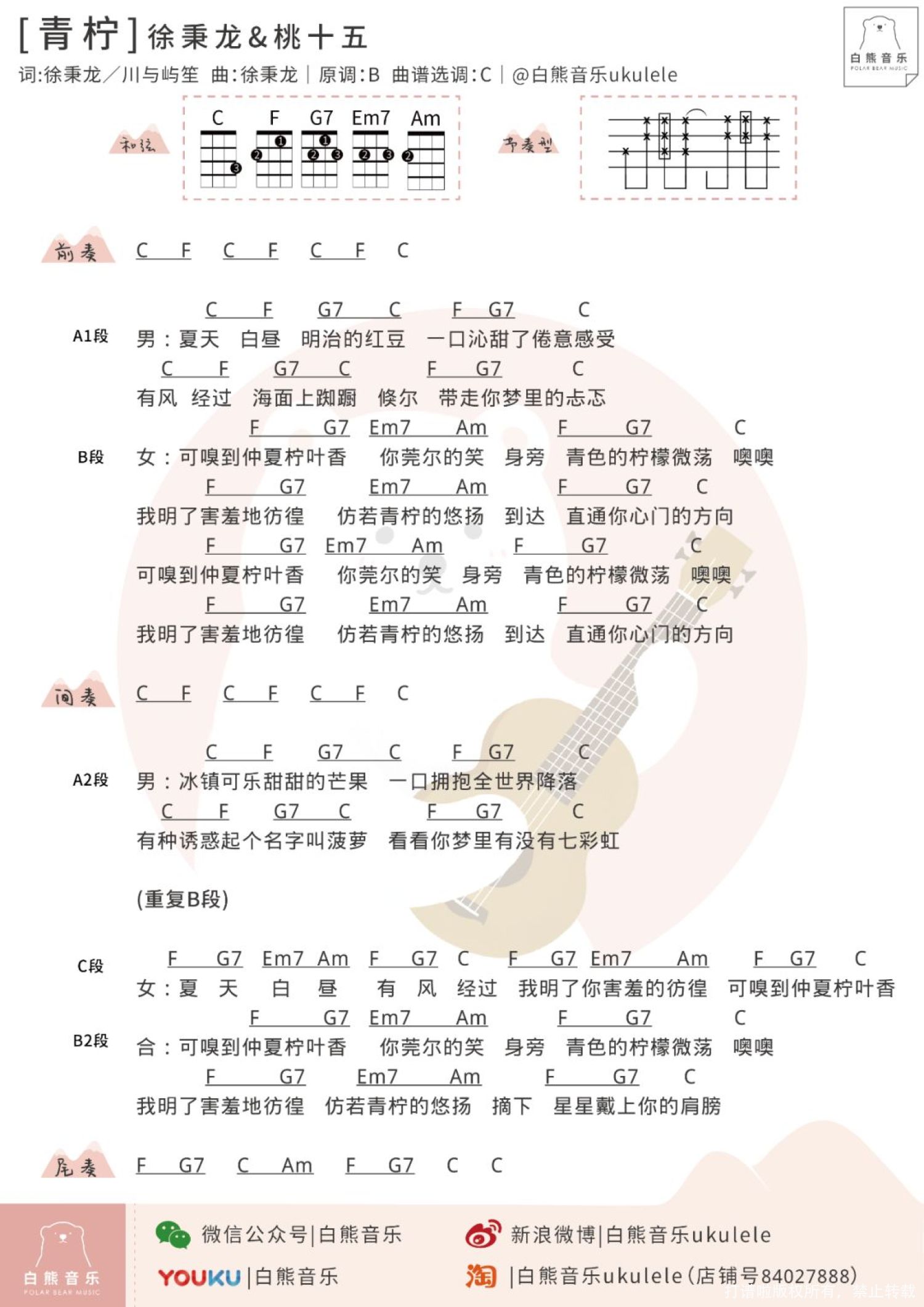 青柠尤克里里谱 - 徐秉龙/桃十五