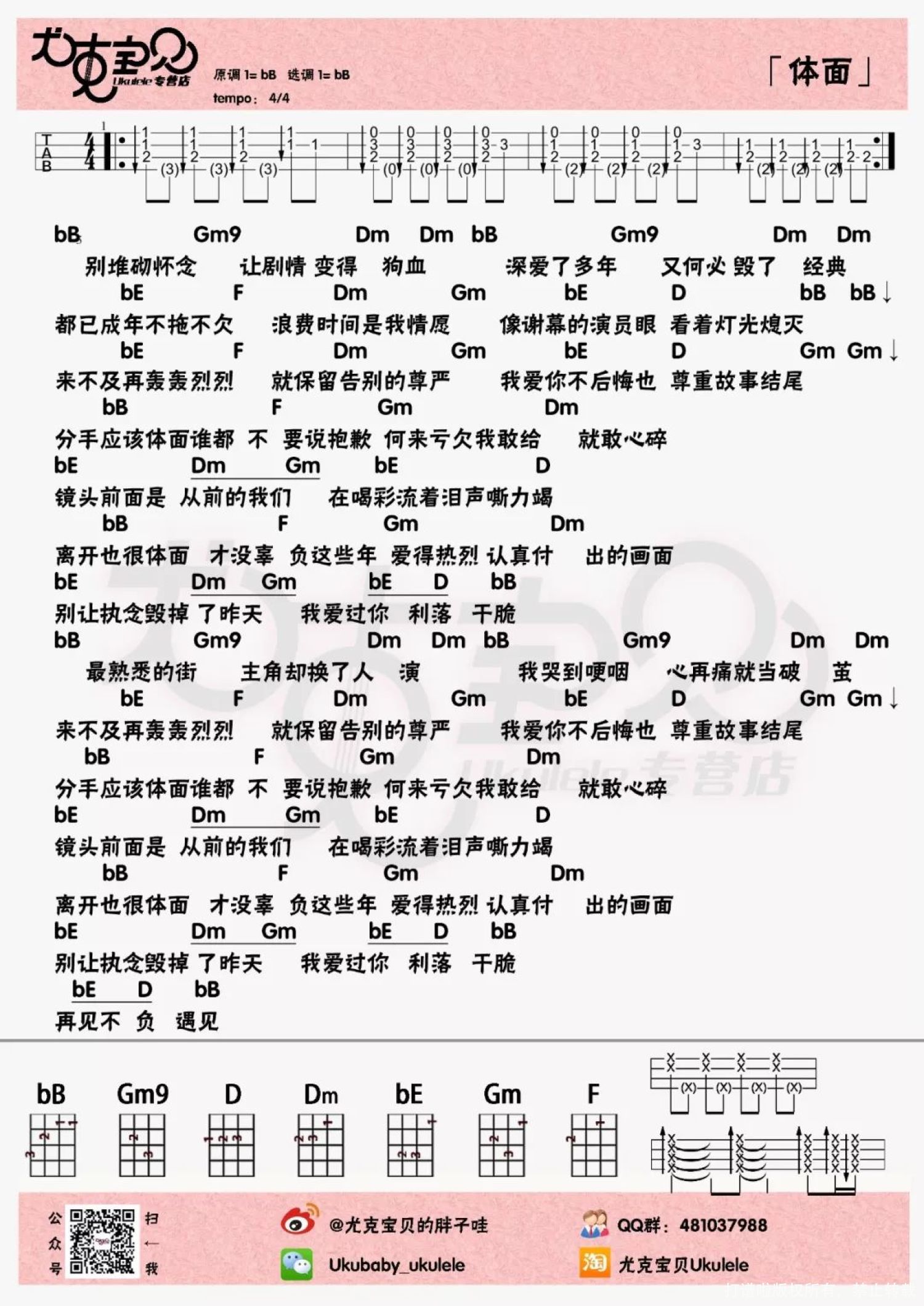 曲谱介绍: Ukulele 弹 唱 & 教 学   「体面」尤克里里谱