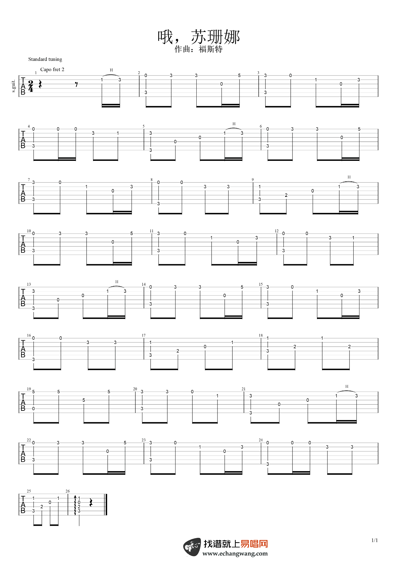 当前位置:琴谱网>吉他独奏>哦,苏珊娜