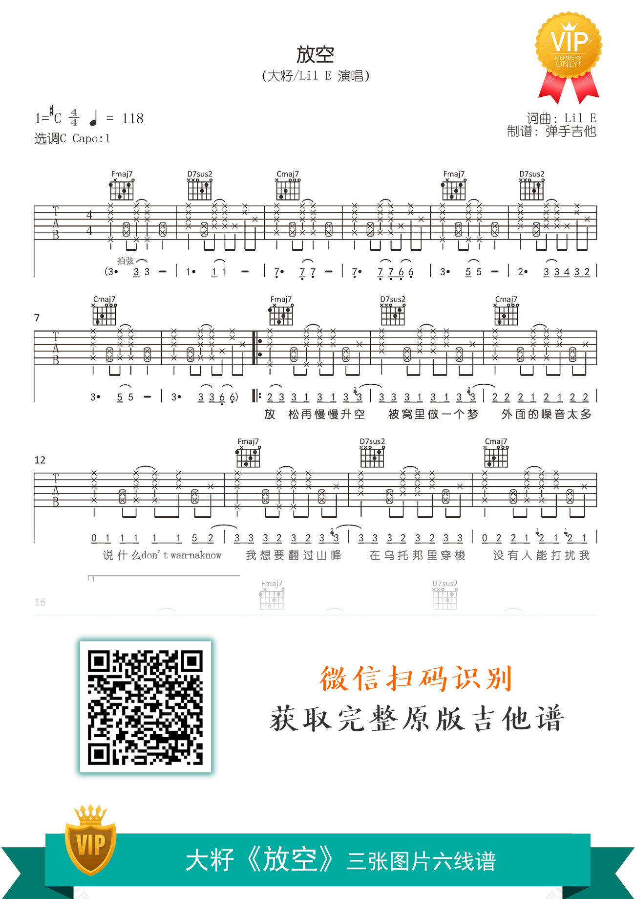 放空吉他谱 - 大籽/Lil - C调吉他弹唱谱