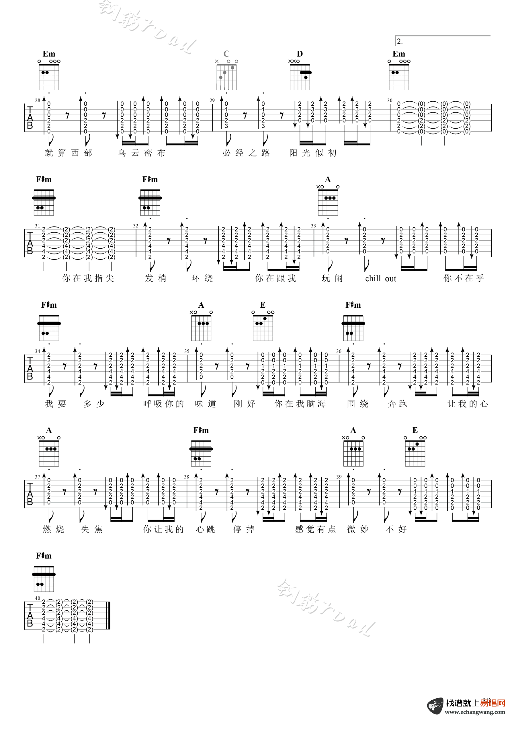 环绕吉他谱 - 张哲瀚 - 吉他弹唱谱