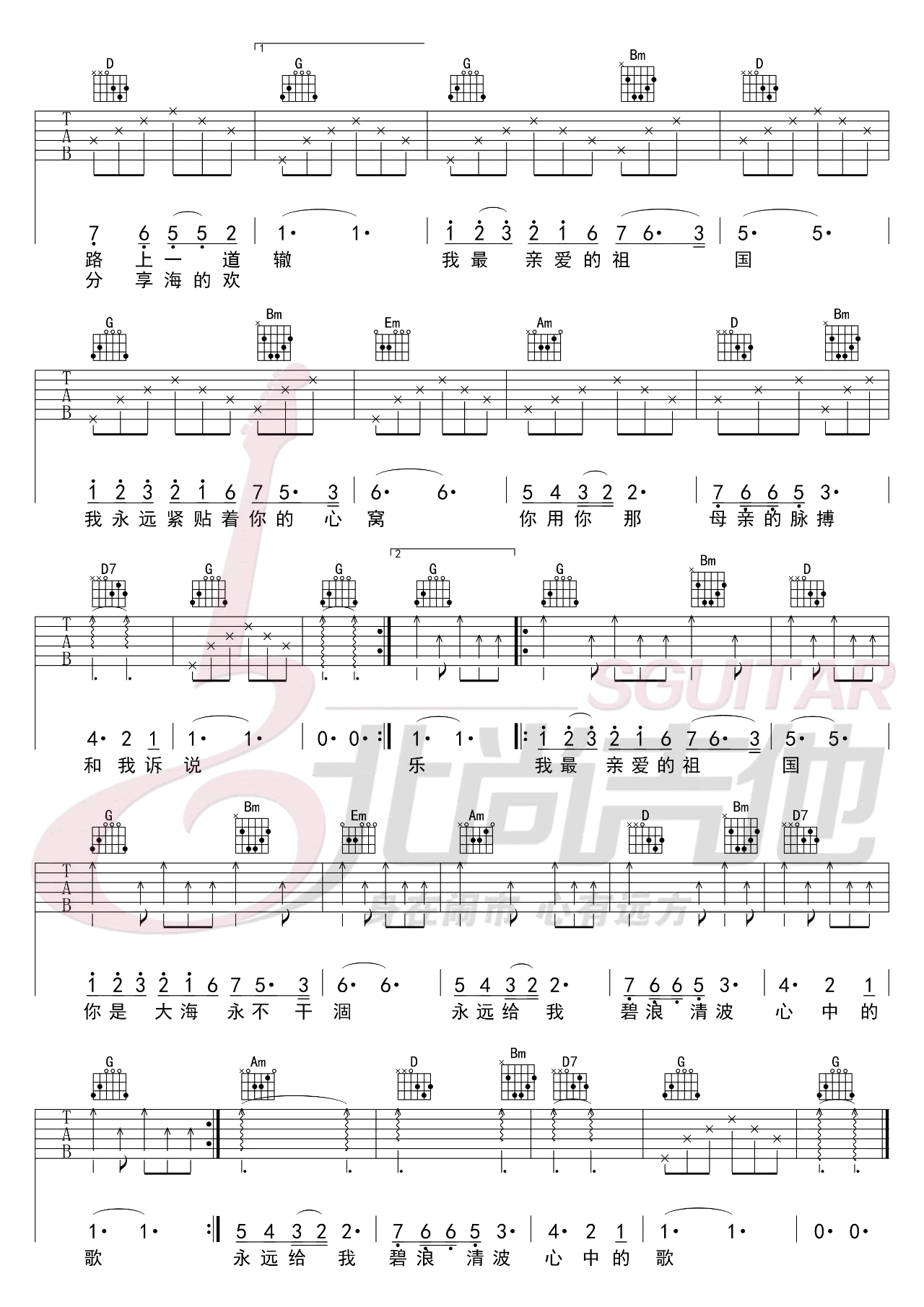 我和我的祖国吉他谱 - G调吉他弹唱谱