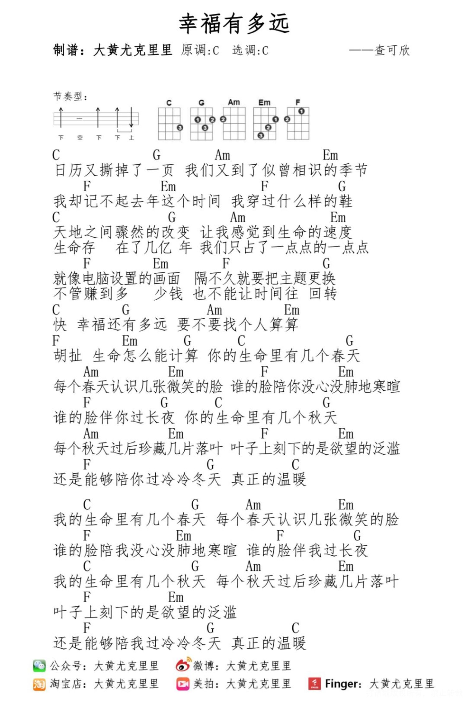 曲谱介绍: 《幸福有多远》尤克里里谱
