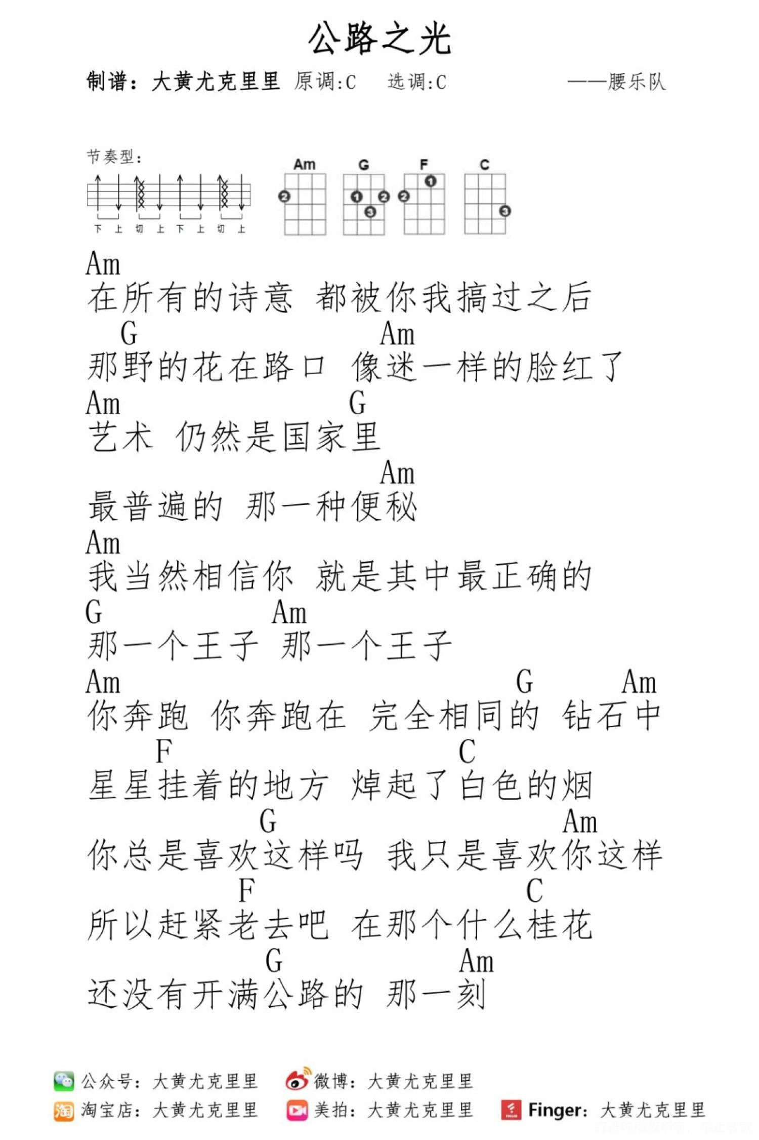 公路之光尤克里里谱 - 腰乐队
