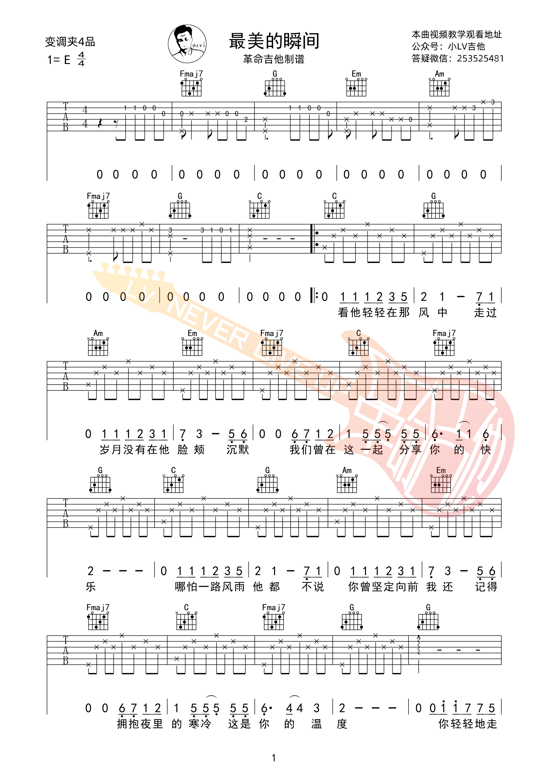 最美的瞬间吉他谱 - C调吉他弹唱谱
