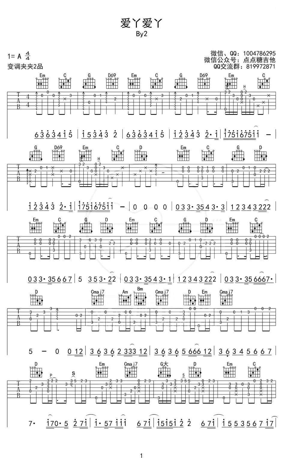 爱丫爱丫吉他谱 - By2 - G调吉他独奏谱