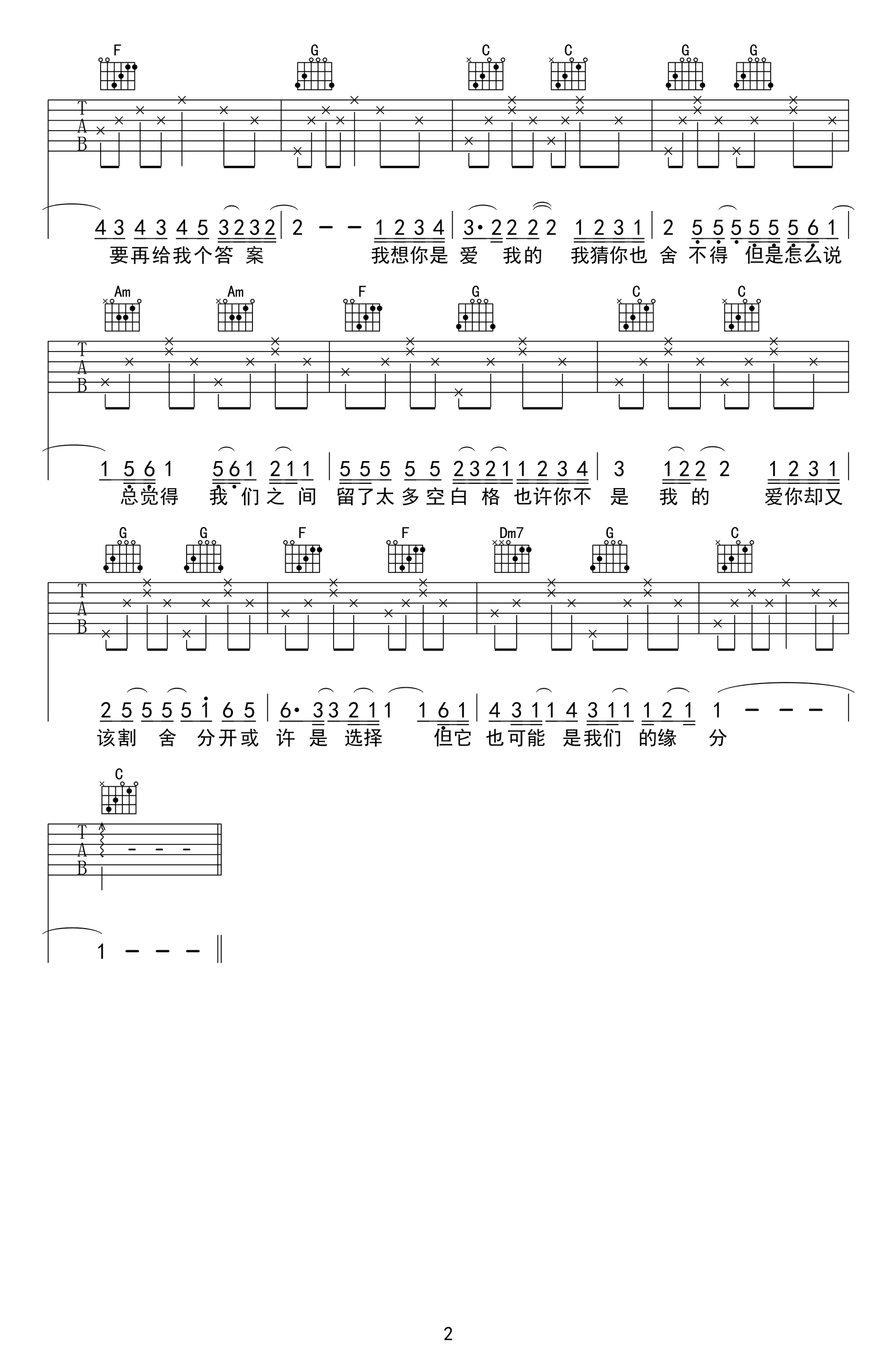 曲谱介绍: 杨宗纬《空白格》吉他弹唱谱,采用C调指法编配,共有3张高清图谱。
