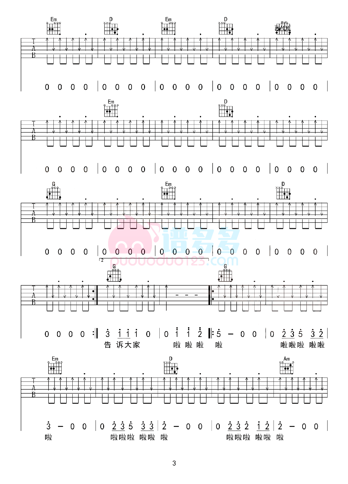 问题出现我再告诉大家吉他谱 - 五条人 - A调吉他弹唱谱