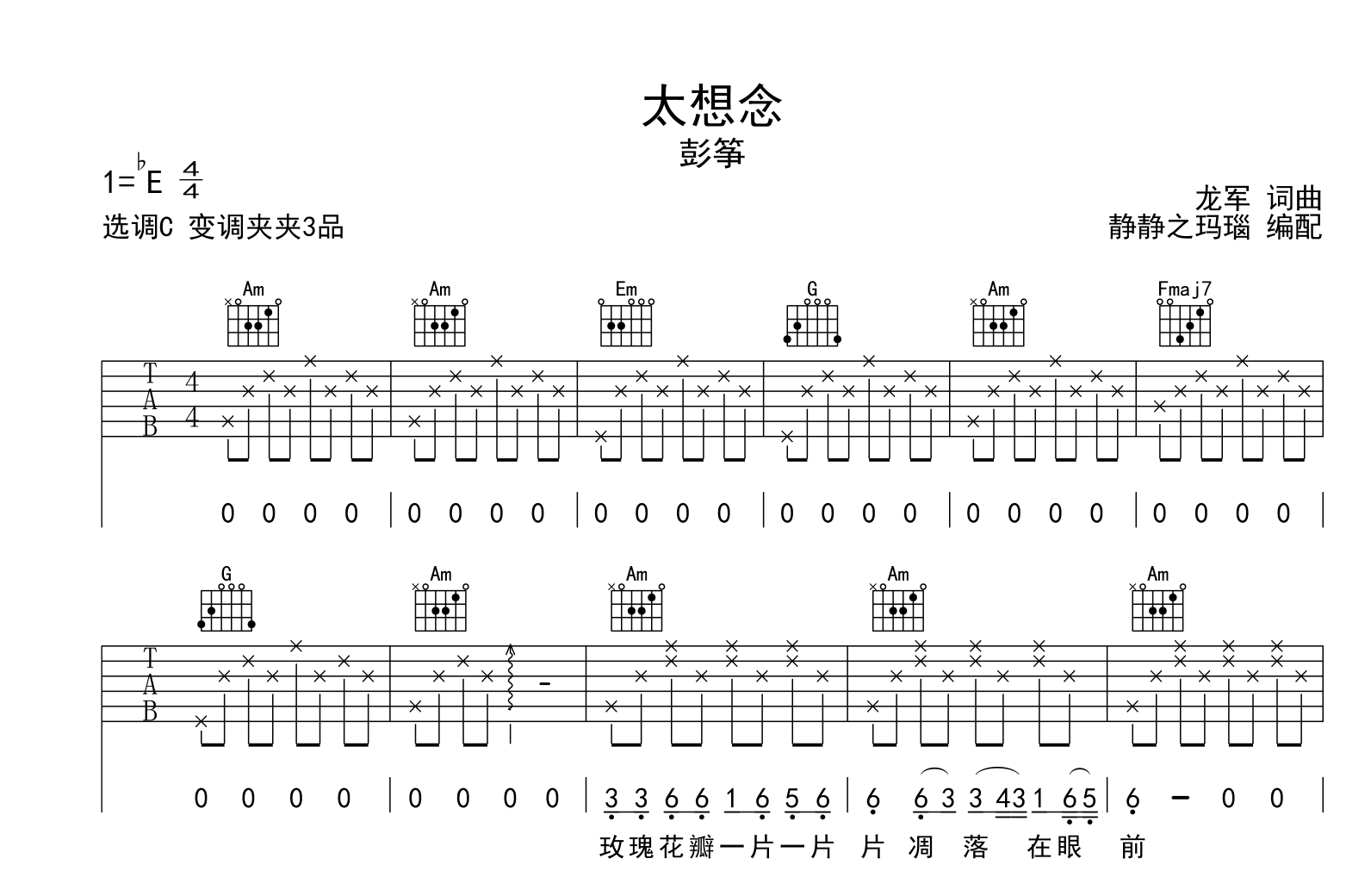 太想念吉他谱 - 彭筝 - C调吉他弹唱谱