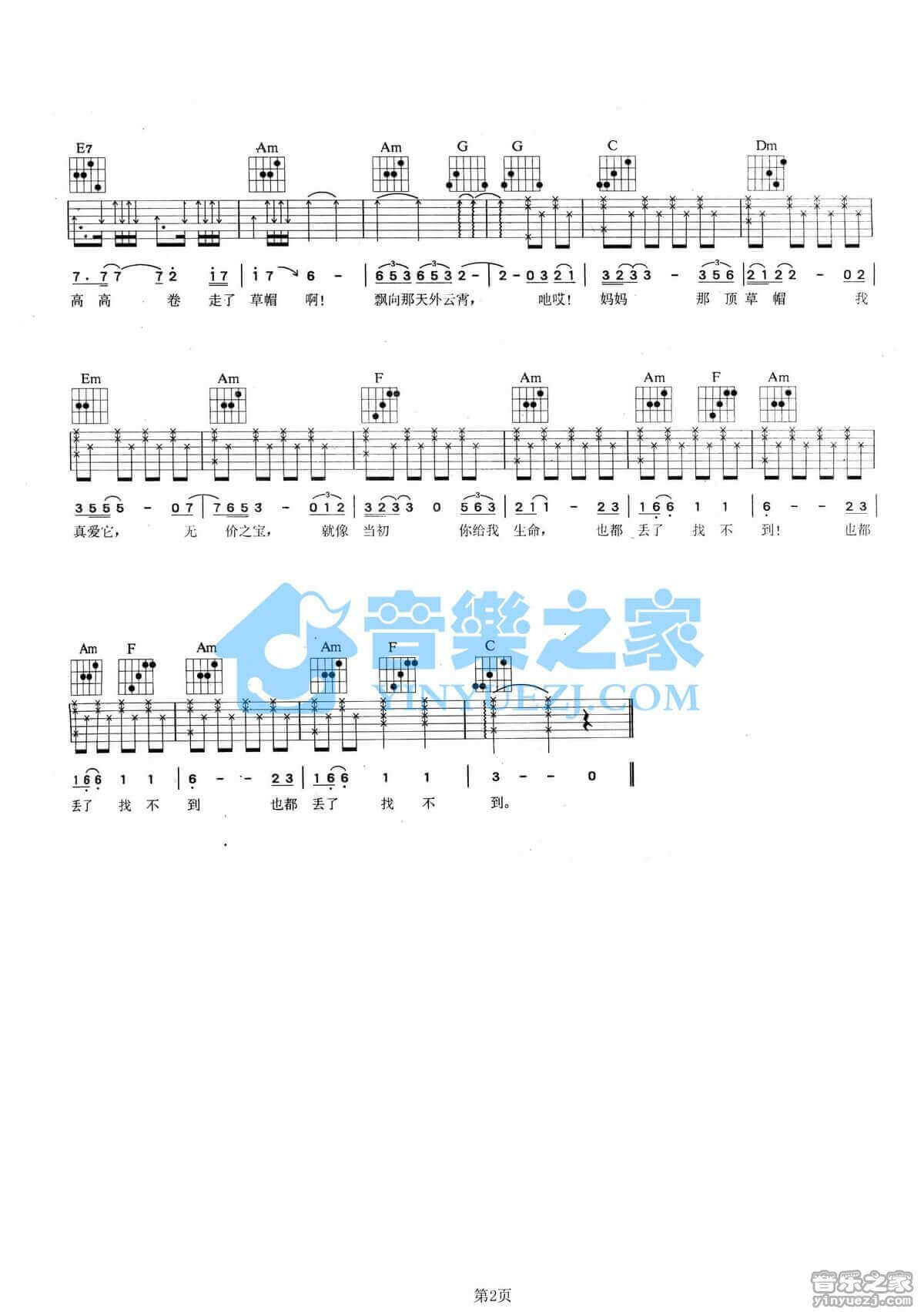 当前位置:琴谱网>吉他弹唱>草帽歌