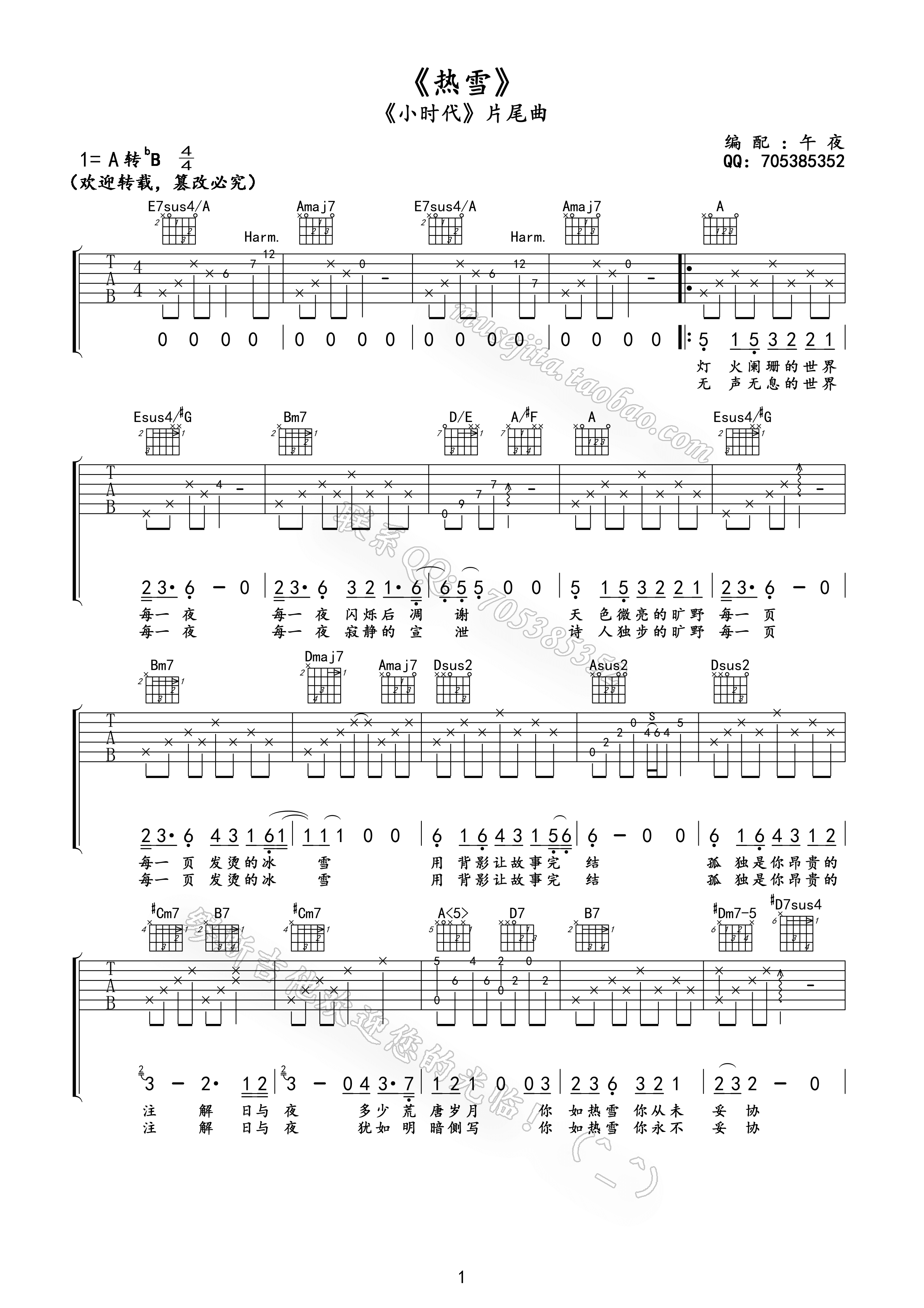 曲谱介绍: 热雪吉他谱采用了A调指法,由午夜编配完成。魏晨的嗓音十分有辨识度,温柔的嗓音搭配上这首歌,赋予了这首歌曲全新的生命力。这首逍遥叹吉他谱也很帅,快点去学习吧,没学会的小伙伴要继续加油喔,稳!