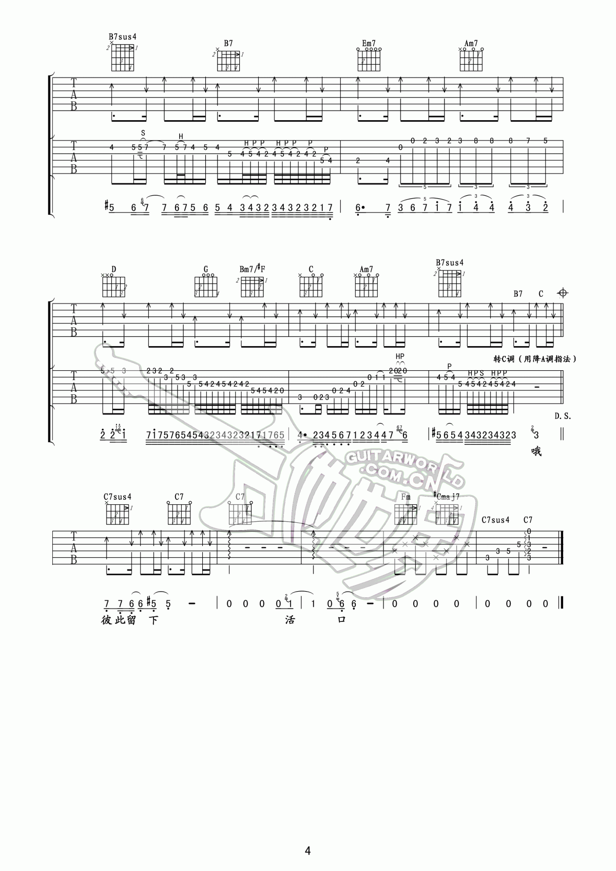 曲谱介绍: 范逸臣《范逸臣放生》吉他弹唱谱,采用G调指法编配,共有4张高清图谱。