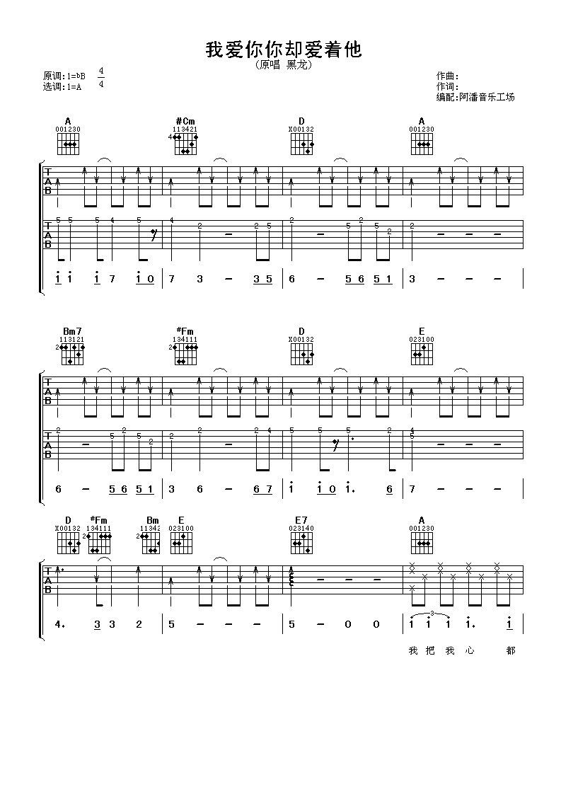 我爱你你却爱着他吉他谱 - 黑龙 - A调吉他弹唱谱