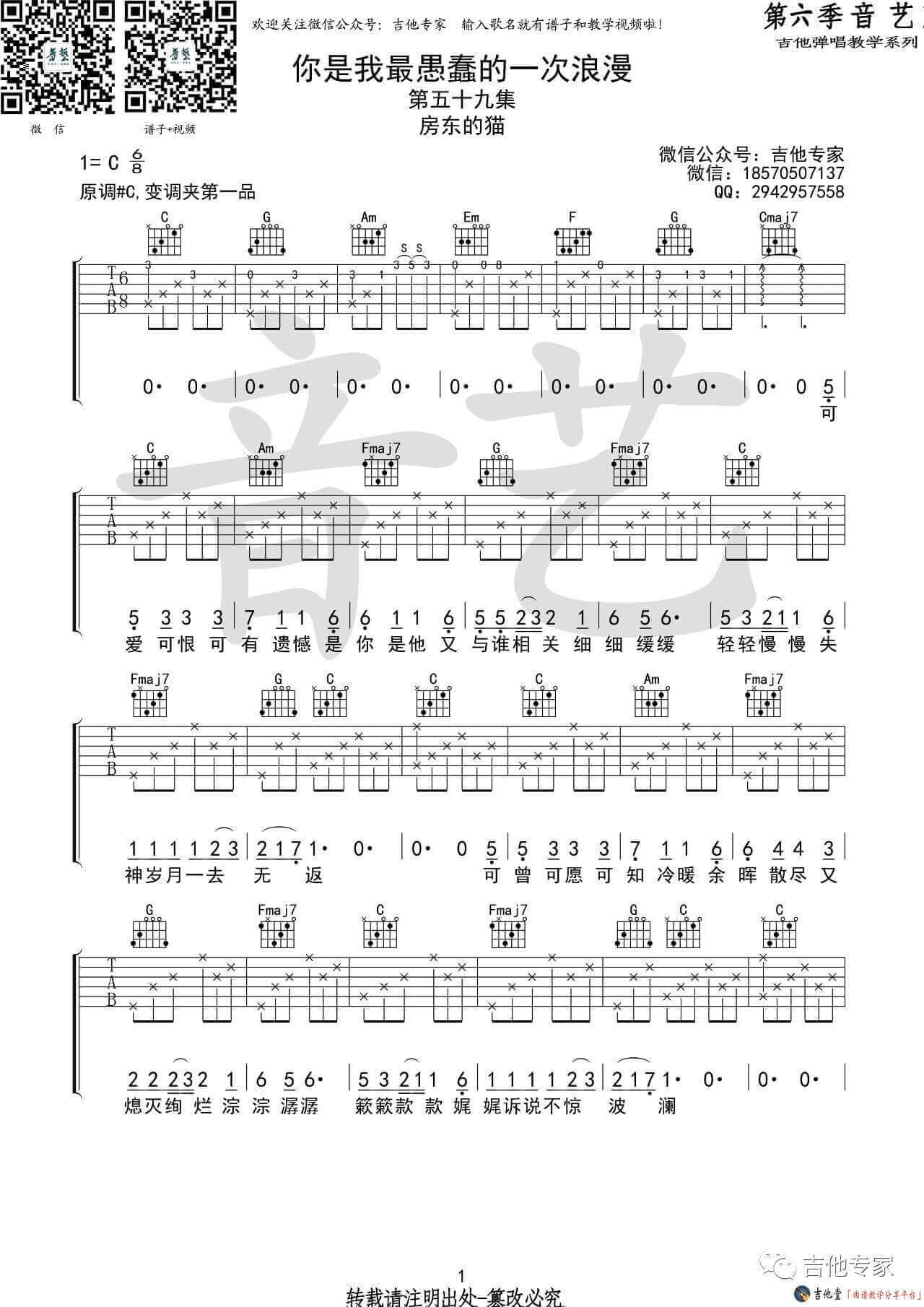 你是我最愚蠢的一次浪漫吉他谱 - 房东的猫 - C调吉他弹唱谱
