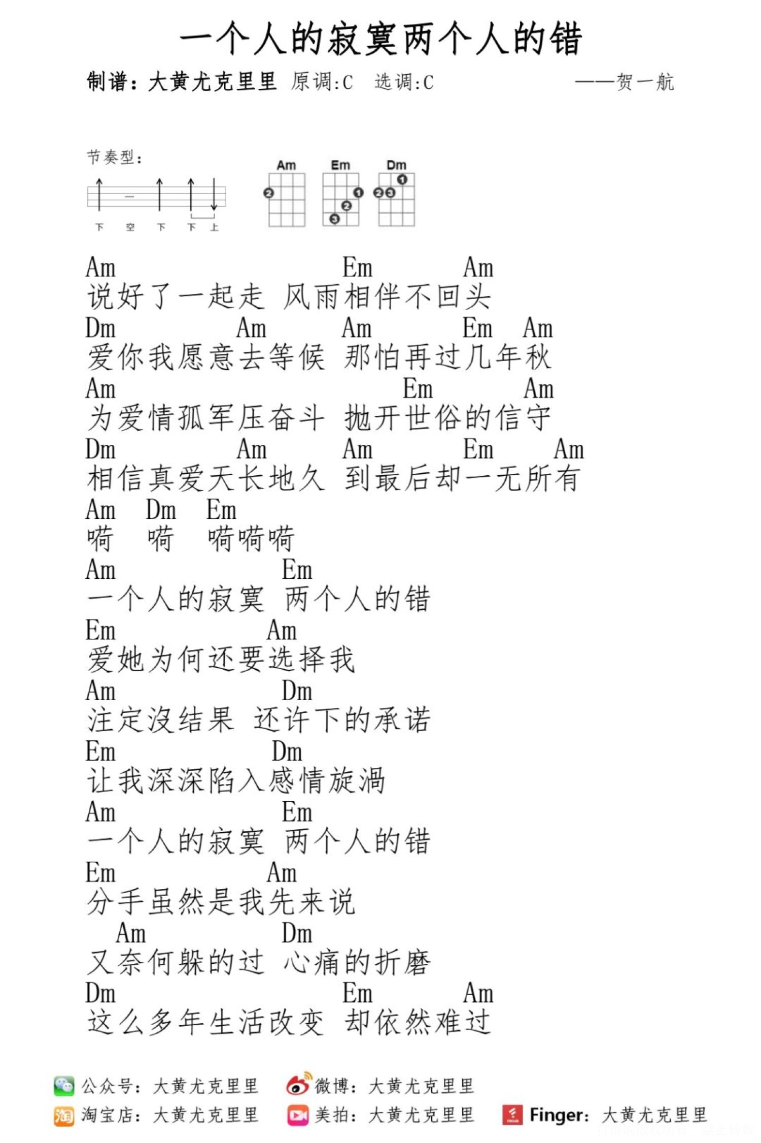 一个人的寂寞两个人的错尤克里里谱 - 贺一航