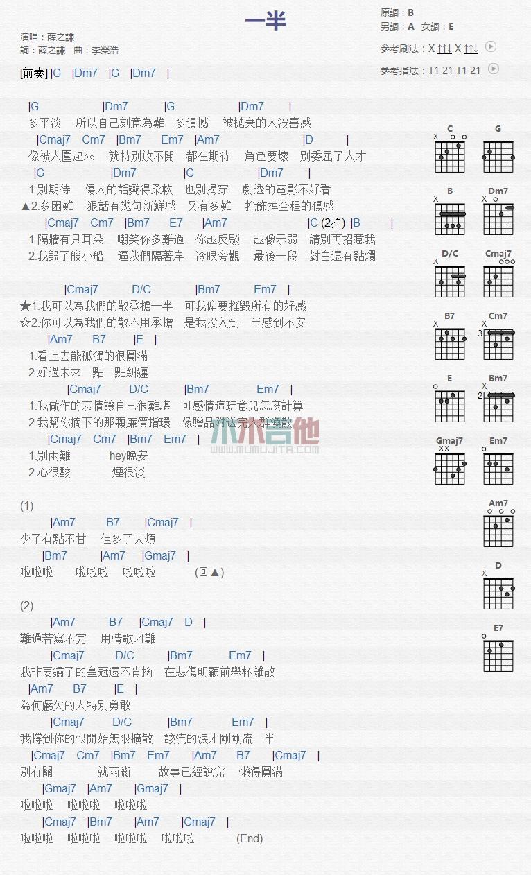 当前位置:琴谱网>吉他弹唱>一半_