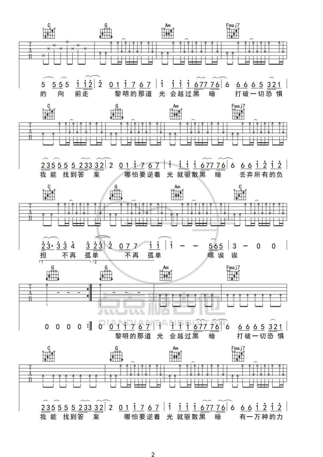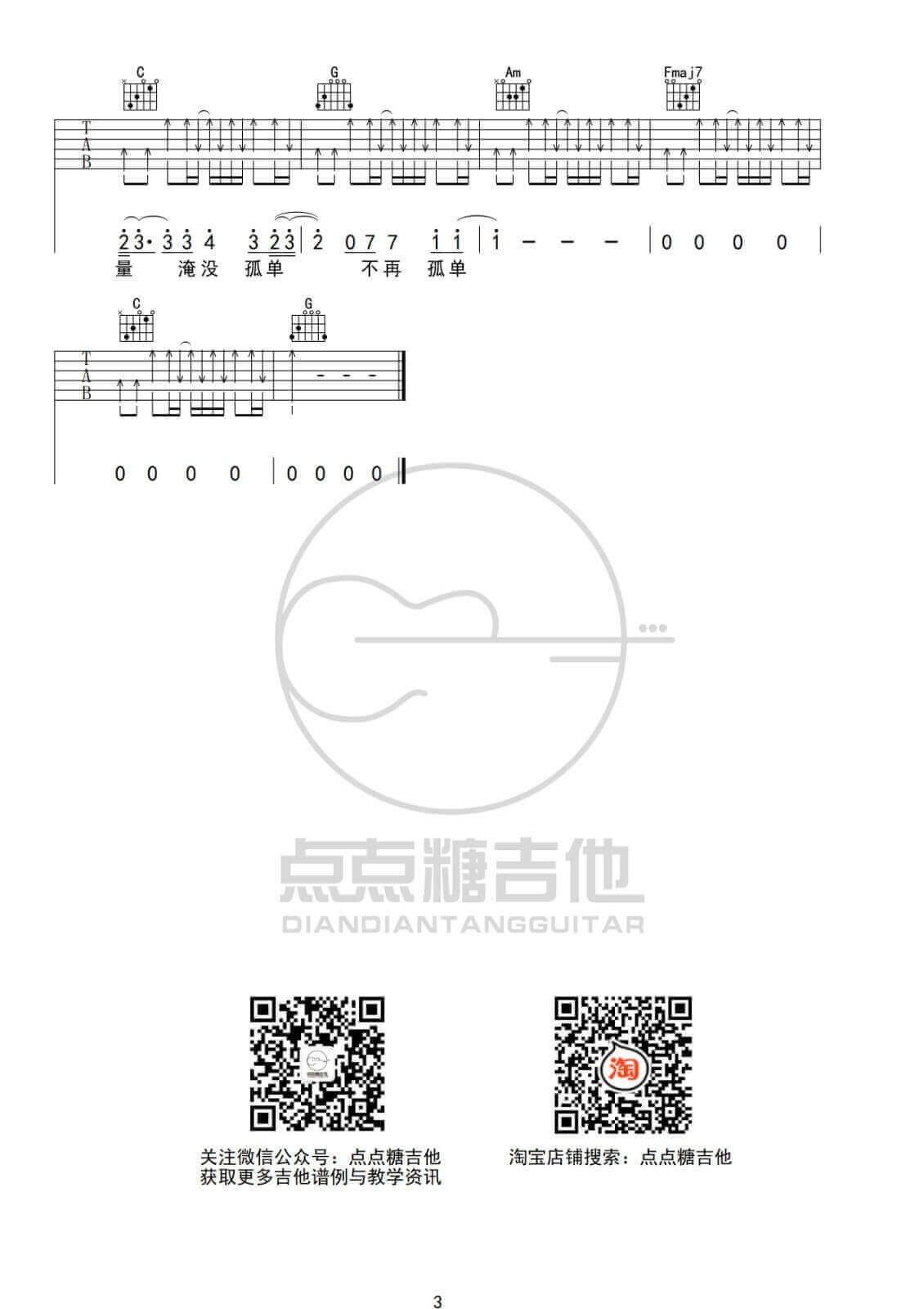 吉他弹唱C调来源:点点糖吉他195 浏览2024-01-28 15:58发布图谱共3页