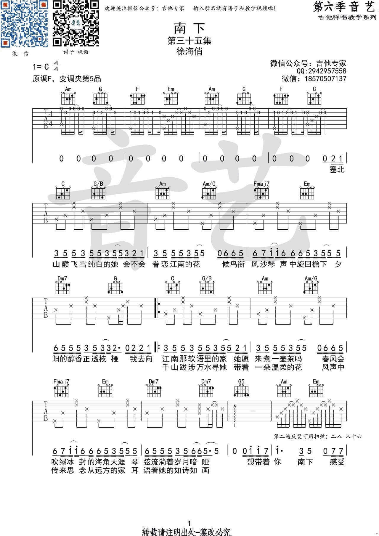 南下吉他谱 - 徐海俏 - C调吉他弹唱谱