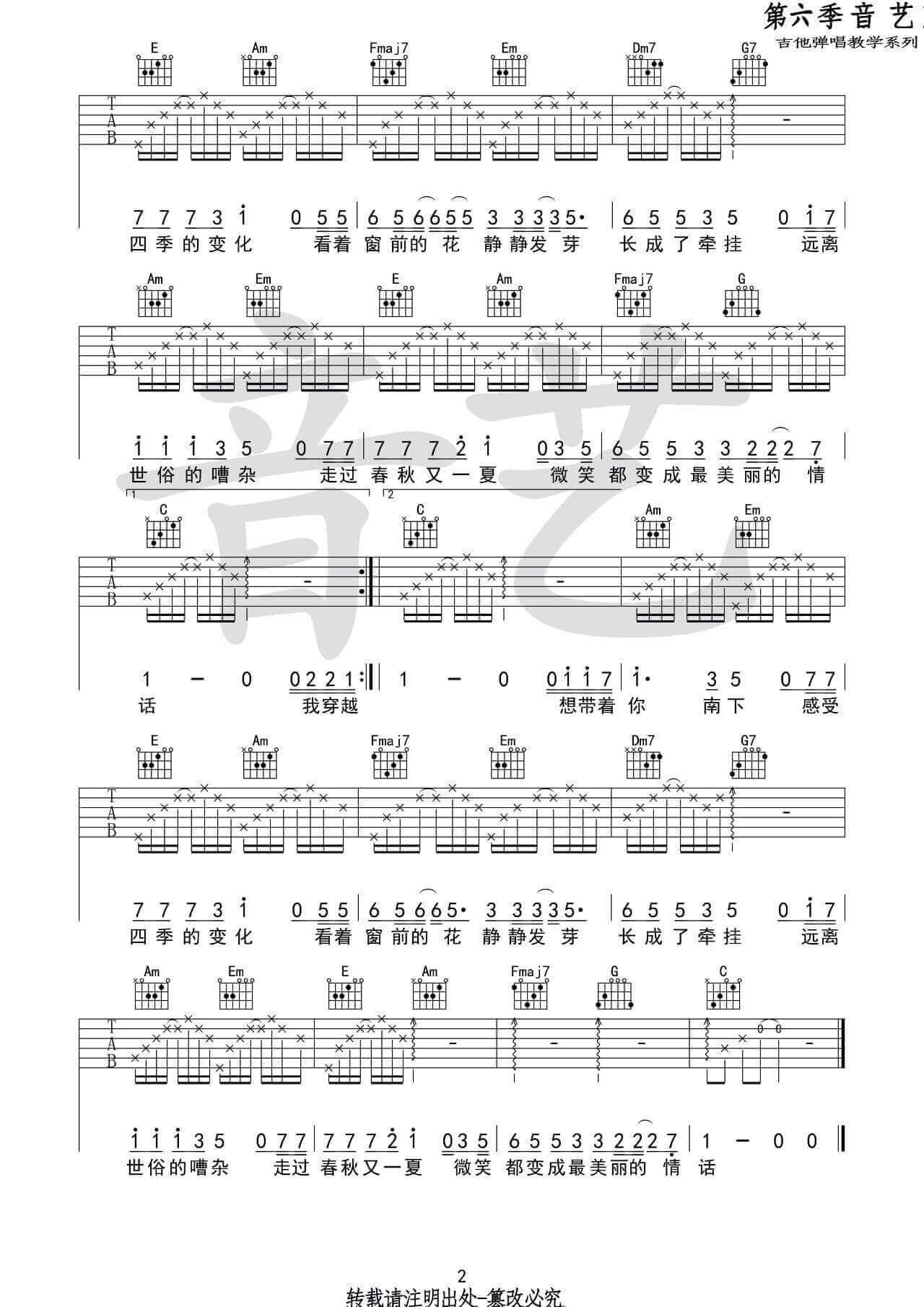 曲谱介绍: 南下吉他谱采用了C调指法,由音艺吉他编配完成。听说,有魅力的帅哥美的都在悄悄练这首天灰吉他谱,小伙伴们也快练起来吧~