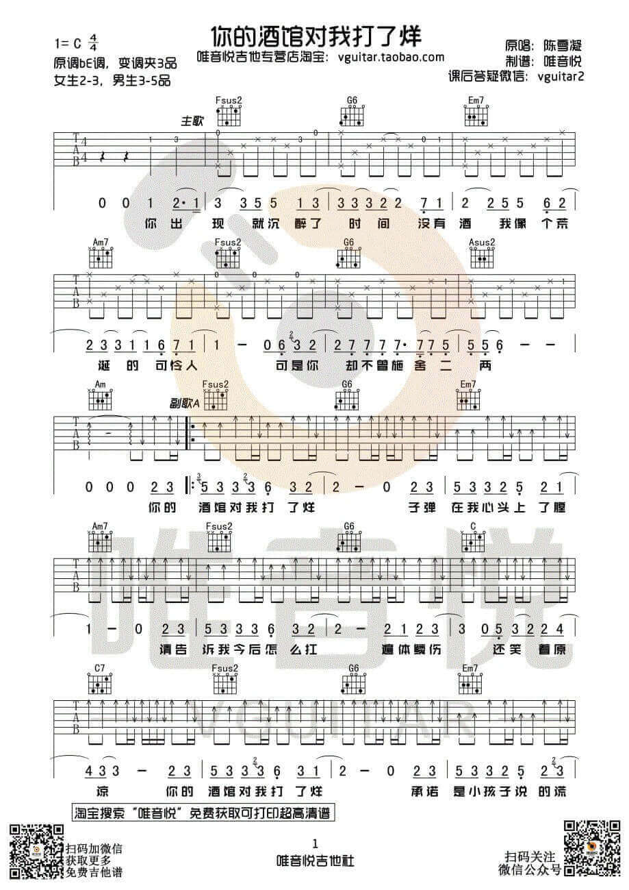当前位置:琴谱网>吉他弹唱>你的酒馆对我打了烊