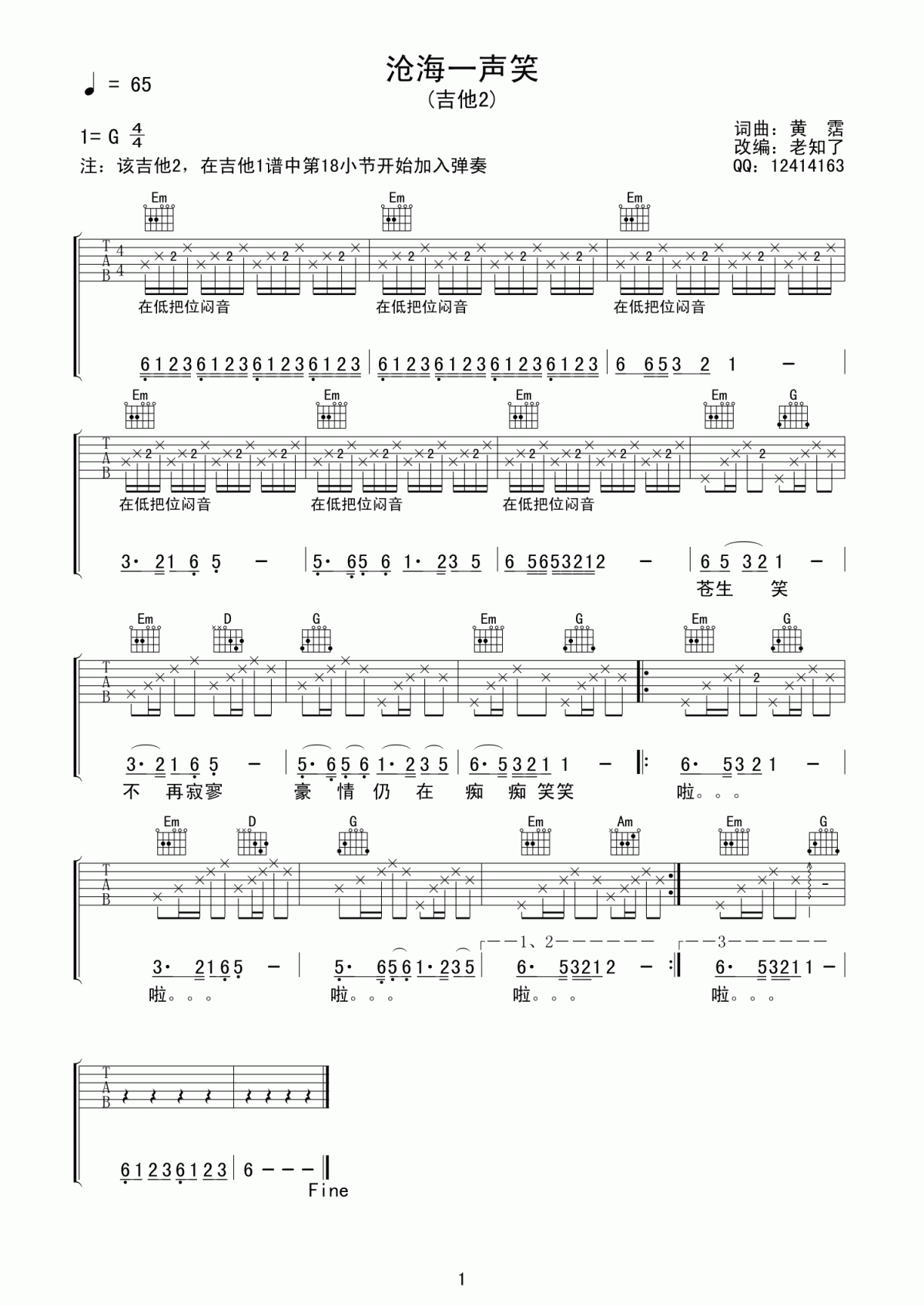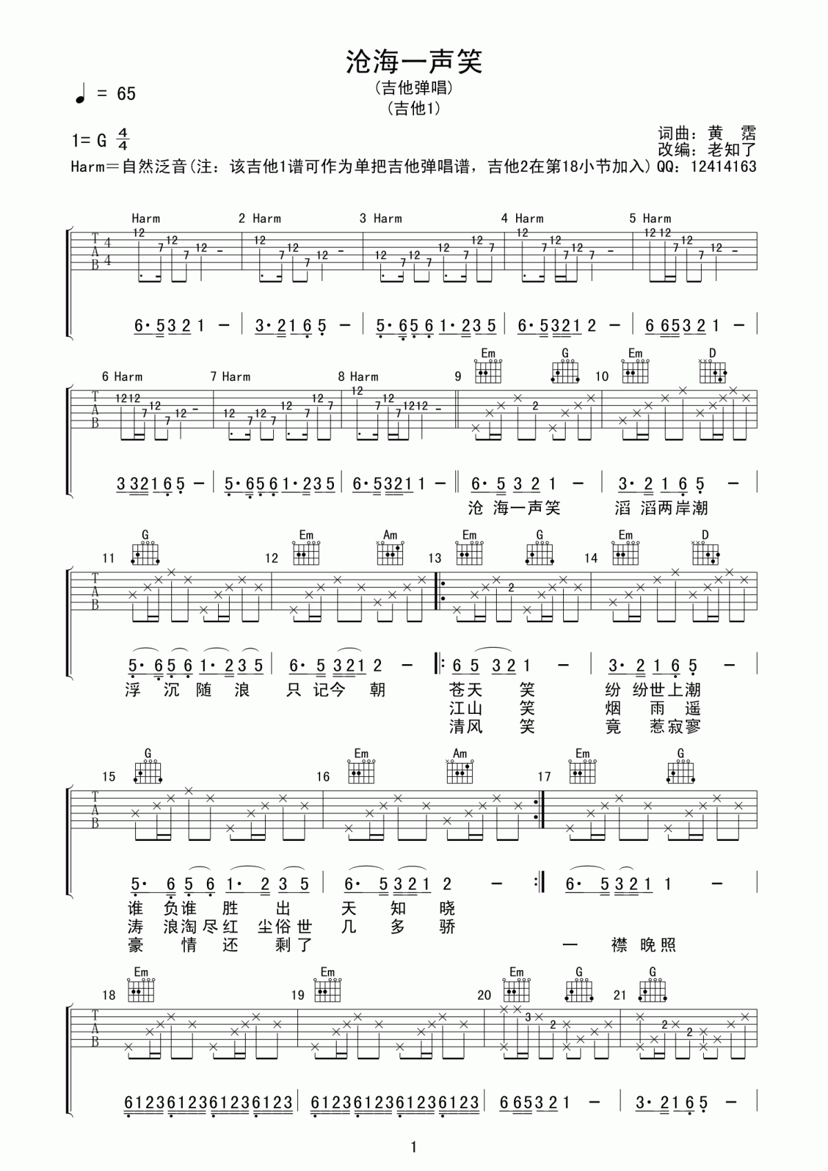 当前位置:琴谱网>吉他弹唱>沧海一声笑
