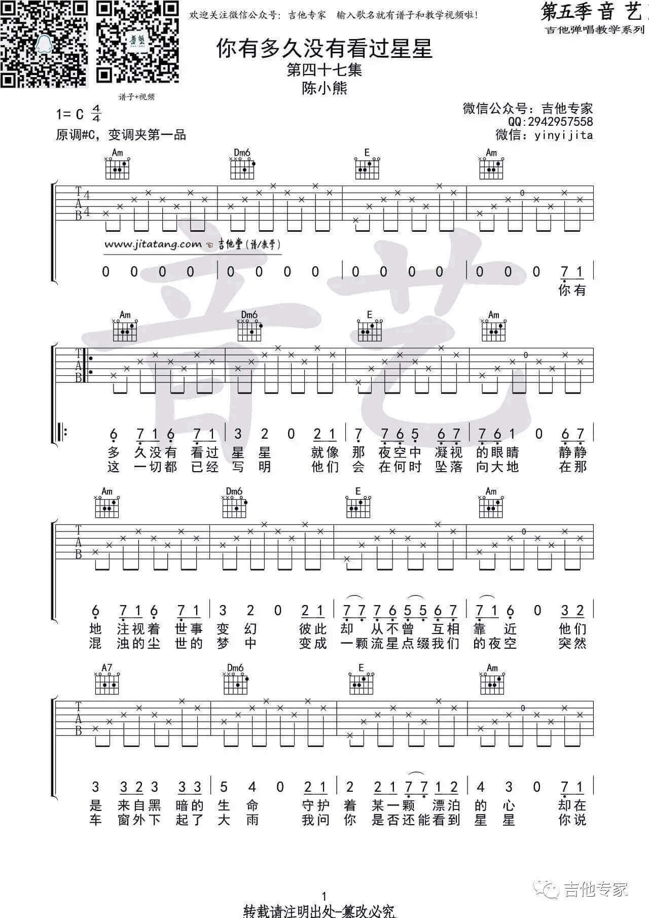 你有多久没有看过星星吉他谱 - 陈小熊 - C调吉他弹唱谱