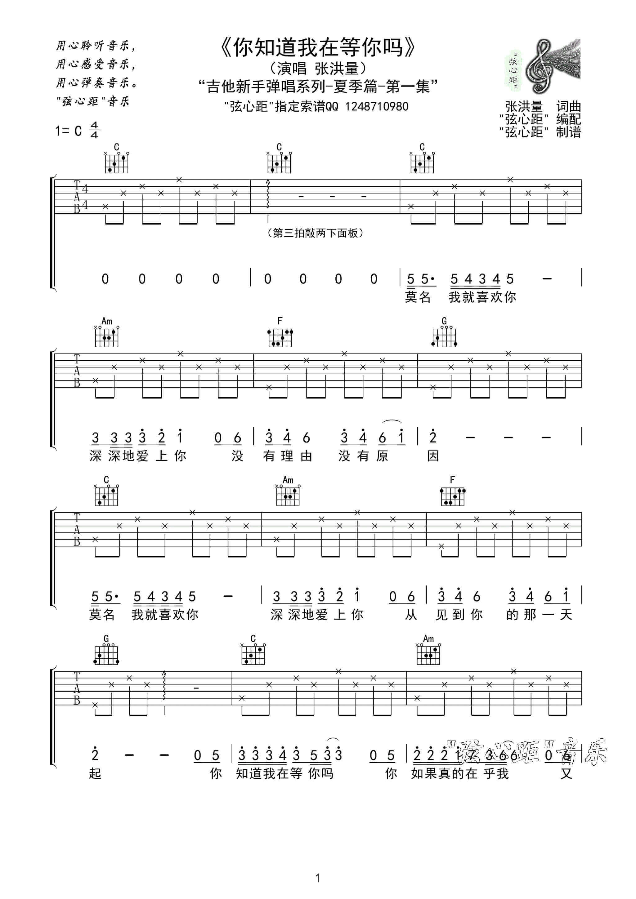 你知道我在等你吗吉他谱 - 张洪量 - C调吉他弹唱谱