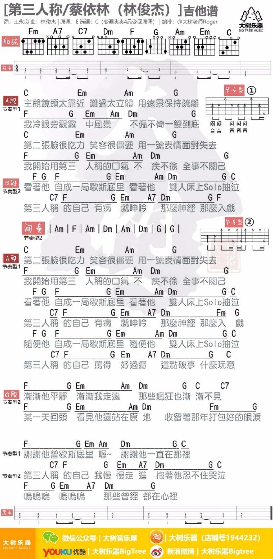 第三人称_C调吉他谱 - 第三人称 - C调吉他弹唱谱