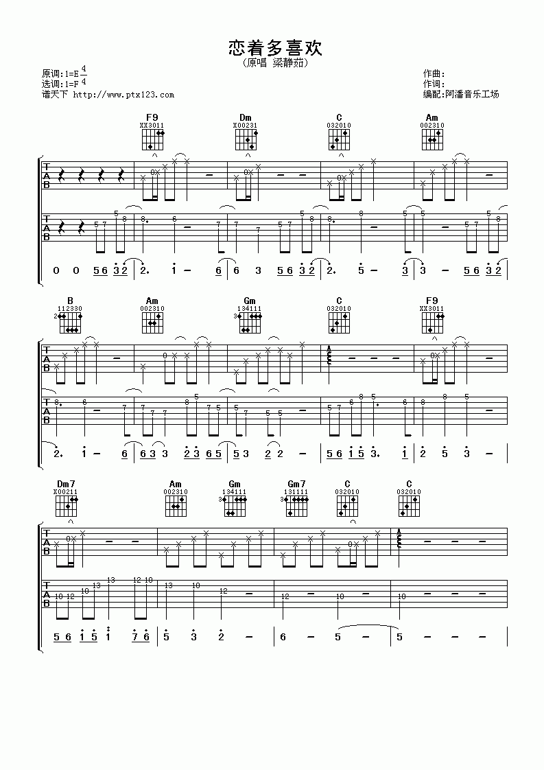 曲谱介绍: 梁静茹《恋着多喜欢》吉他弹唱谱,共有3张高清图谱。