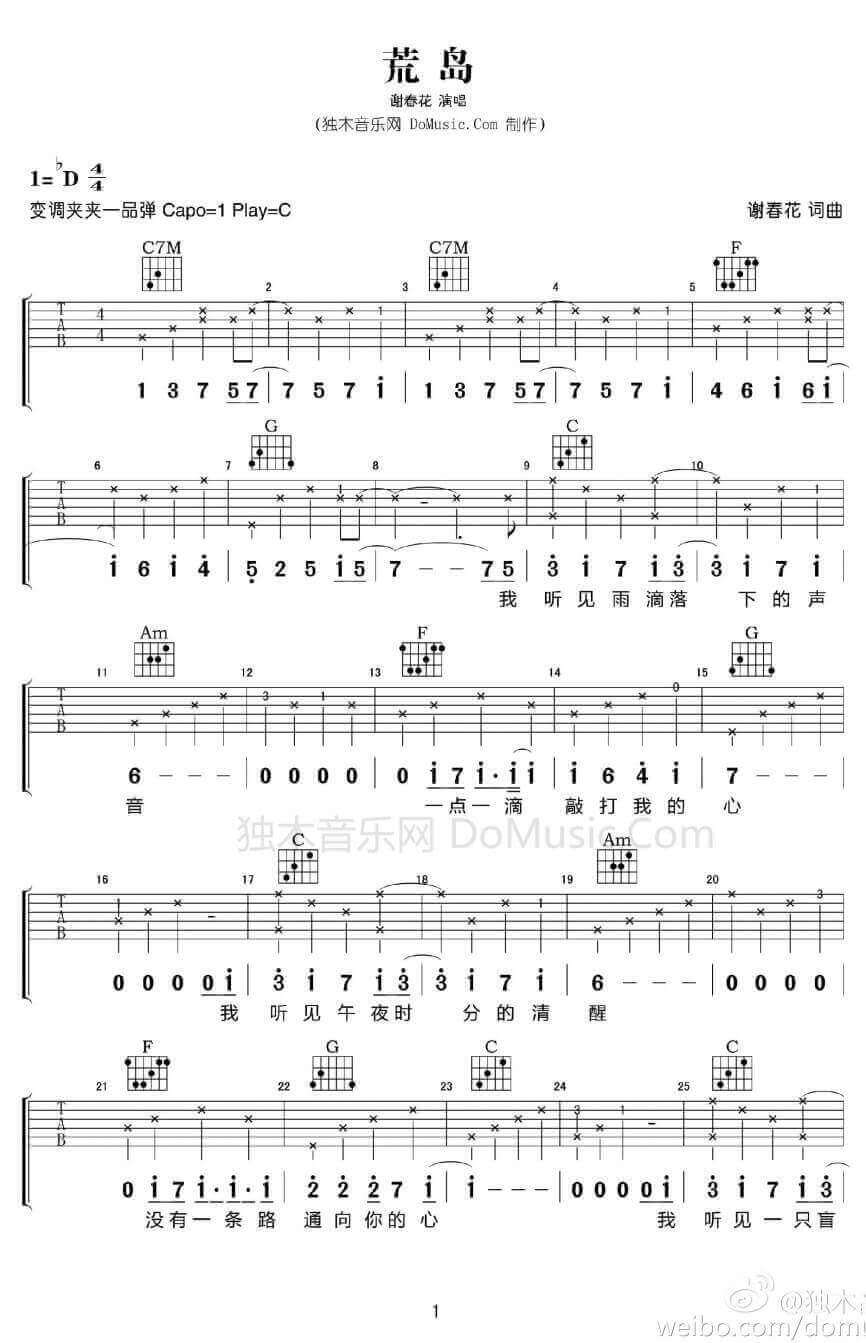荒岛吉他谱 - 谢春花 - C调吉他弹唱谱