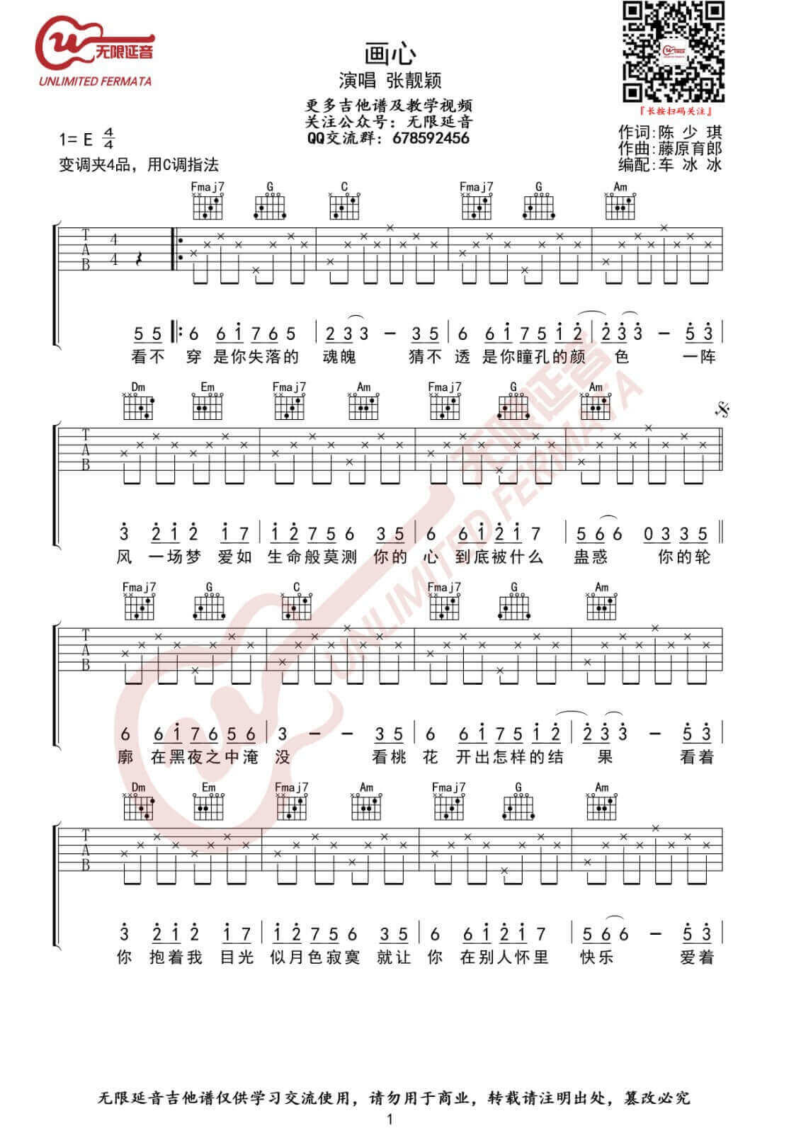 琴谱网为您精心推荐 画心 高清图谱