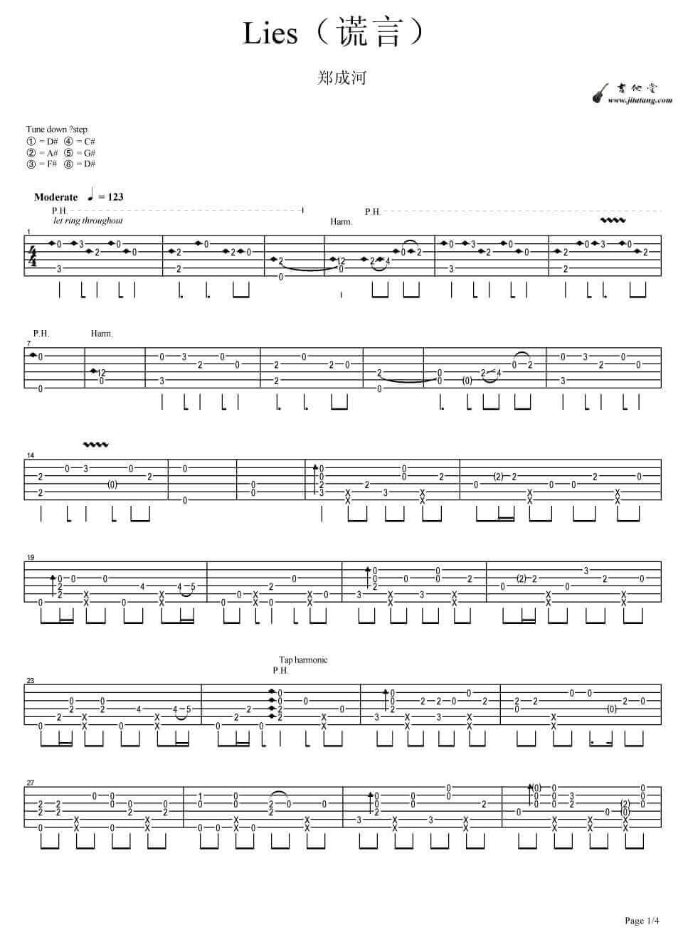谎言吉他谱 - Bigbang - 吉他独奏谱