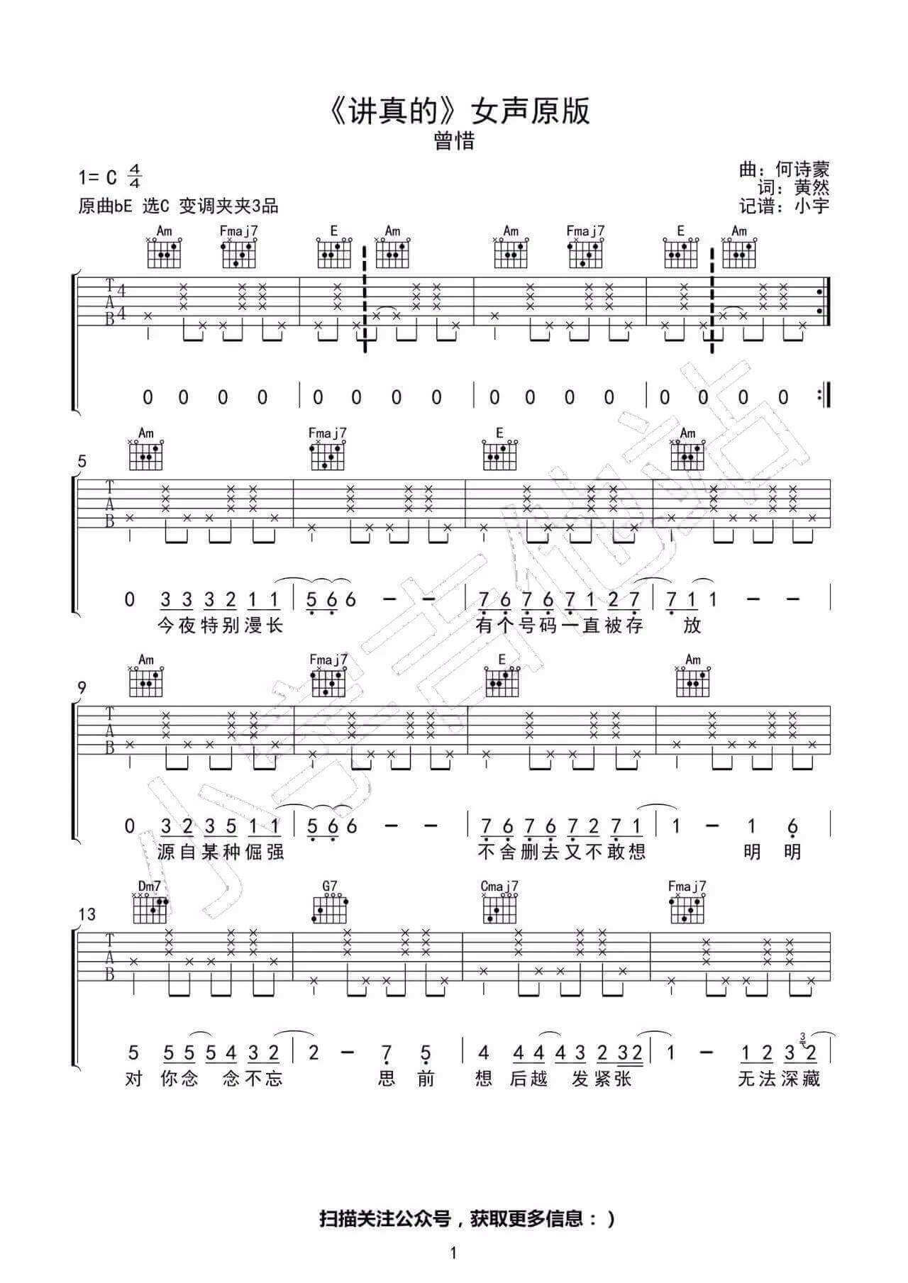 讲真的吉他谱 - 曾惜 - C调吉他弹唱谱