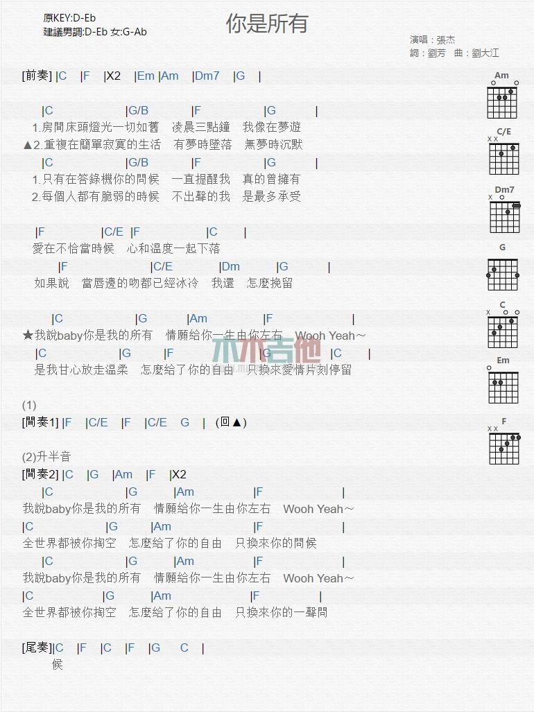 曲谱介绍: 你是所有《你是所有_》吉他弹唱谱,共有1张高清图谱,免翻页排版设计。