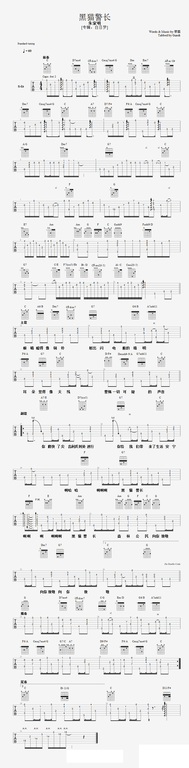 黑猫警长_版吉他谱 - 黑猫警长 - 吉他独奏谱