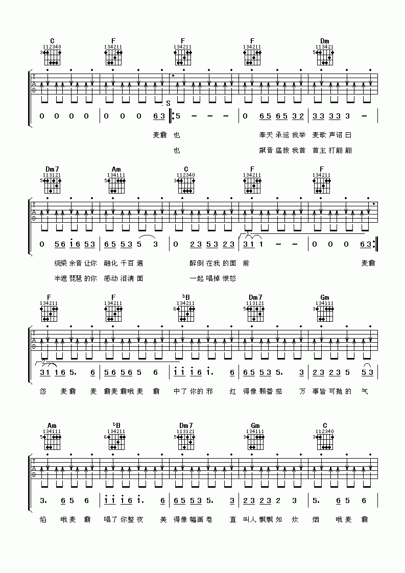 曲谱介绍: 花儿乐队《麦霸》吉他弹唱谱,共有3张高清图谱。