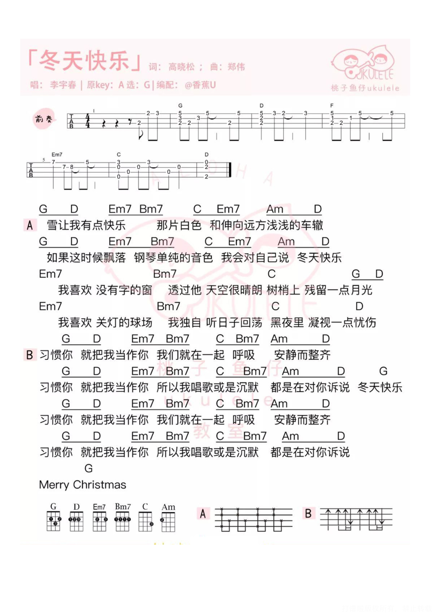 曲谱介绍: 《冬天快乐》_C调尤克里里谱